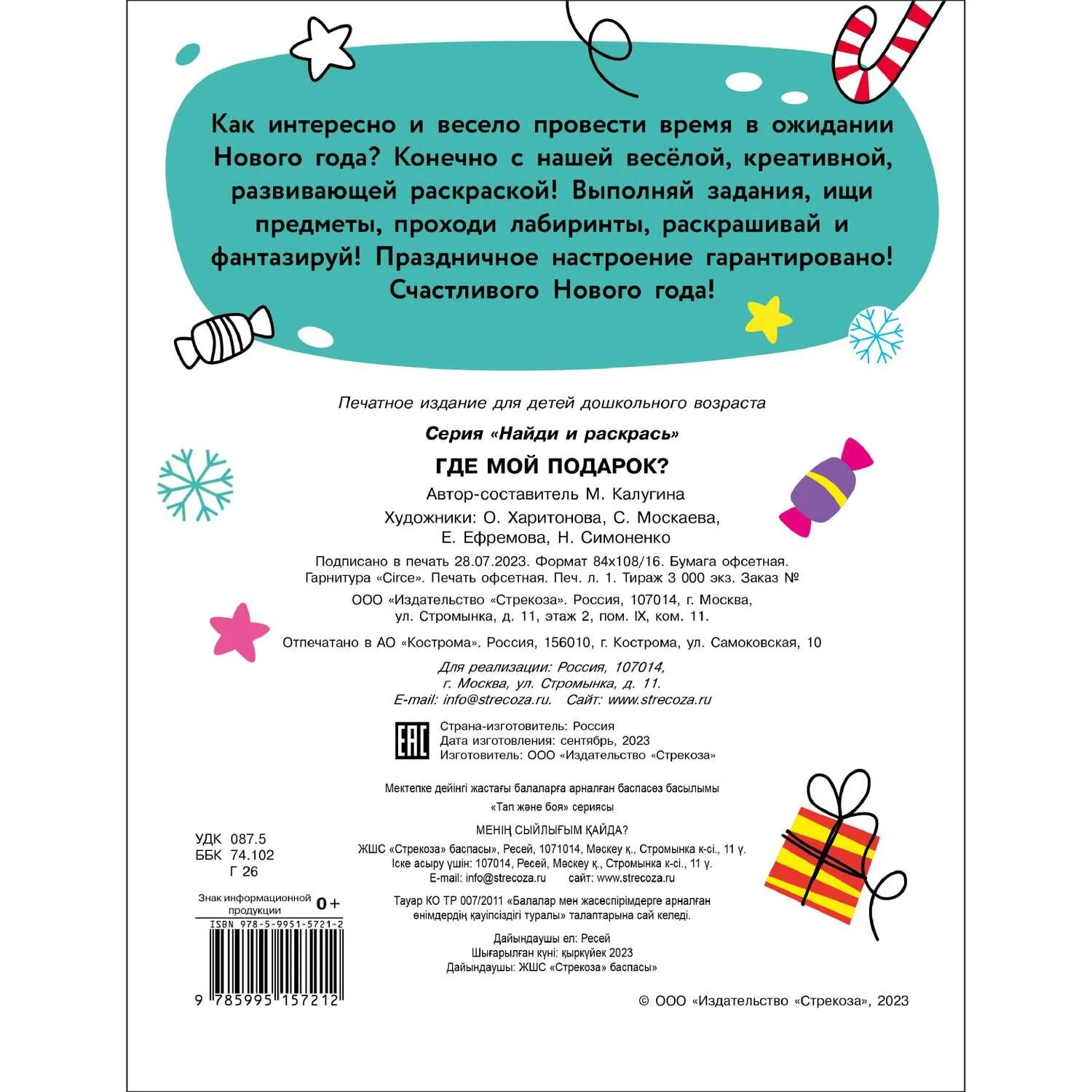 На сегодняшний день товар «Книга: Найди и раскрась. Где мой подарок? (Калугина М.); Стрекоза, 2023» можно купить с кешбеком в 4 магазинах: book24, Буквоед, Читай-город, Яндекс.Маркет
