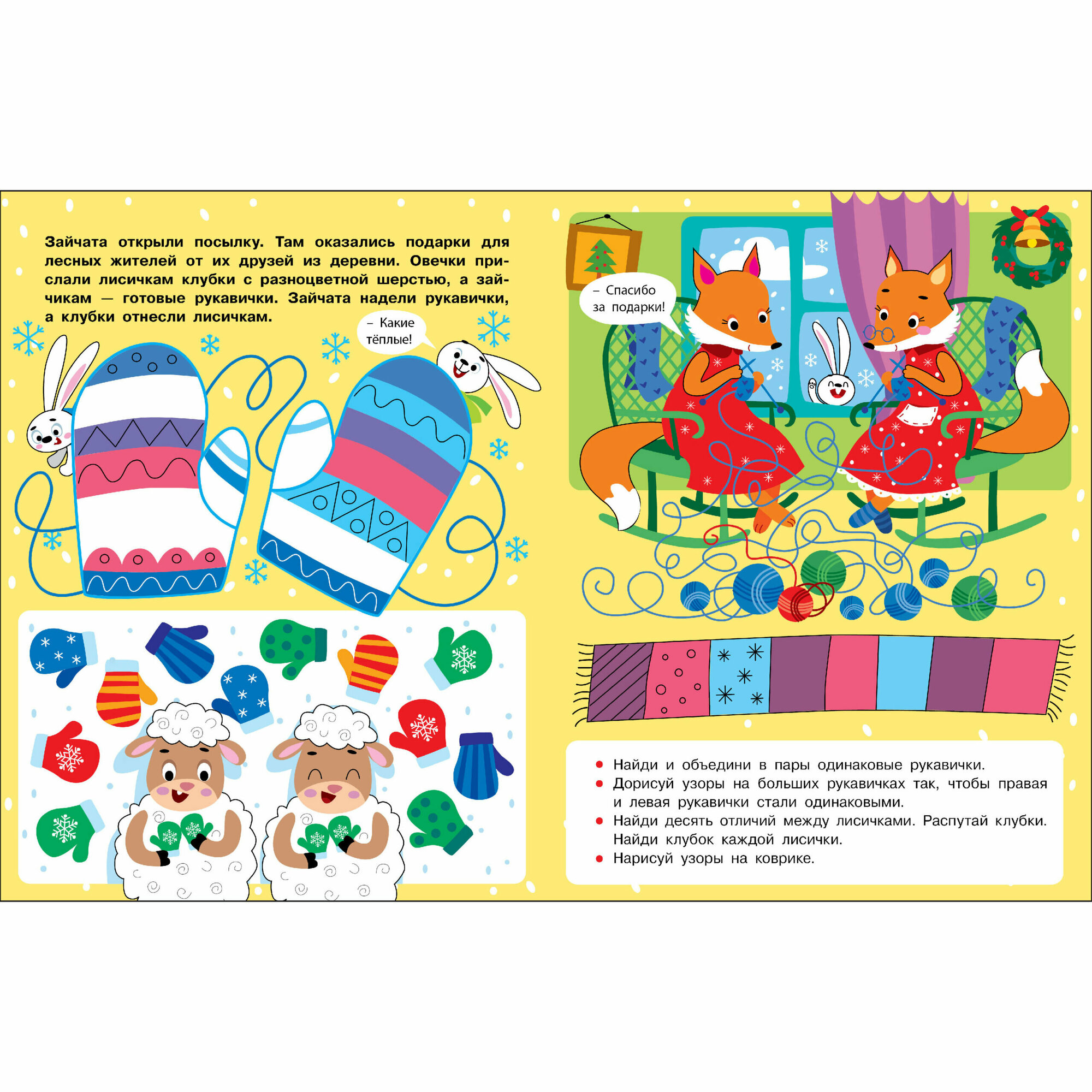 разнести подарки и выбрать самую красивую ёлочку! Проходите лабиринты, ищите отличия и несуразности, рисуйте, обводите и раскрашивайте, решайте логические задачки и головоломки, находите пары, и находите спрятанные предметы! Праздничное настроение гарантировано!