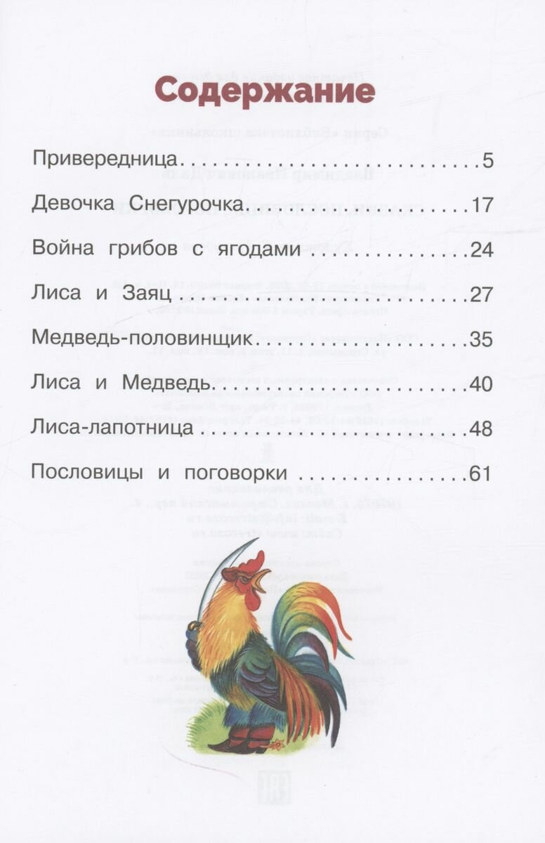 Русский писатель и этнограф Владимир Иванович Даль всю жизнь собирал фольклор, обрабатывал сказки и писал в народном стиле свои произведения. В эту книгу вошли самые известные сказки: “Привередница”, “Девочка Снегурочка”, “Война грибов с ягодами”, “Медведь-половинщик”, “Лиса-лапотница”, а также пословицы и поговорки.