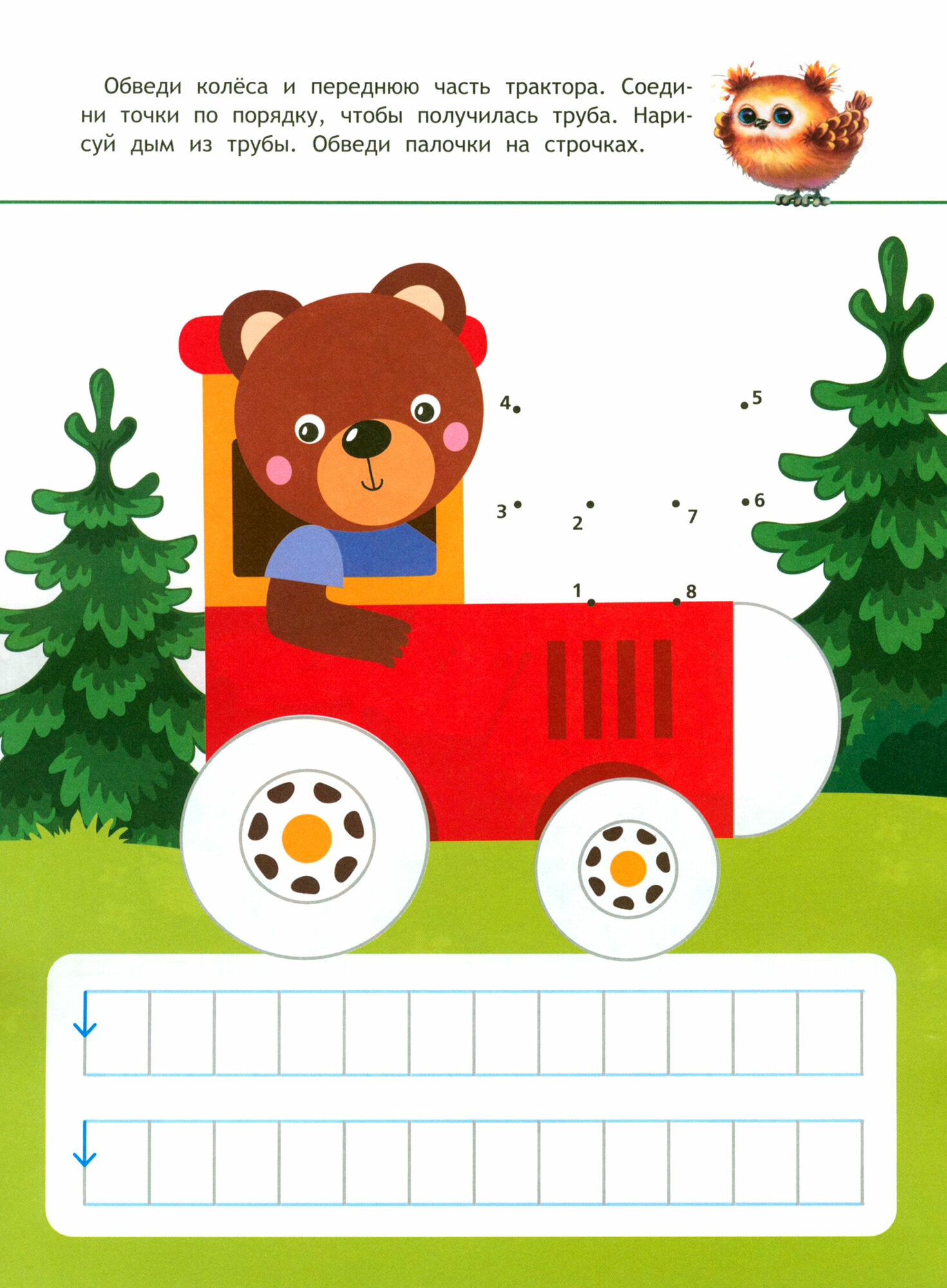 Эта книга предназначена для развития графических навыков у ребёнка от четырёх лет. Задания в ней расположены в порядке возрастания сложности: сначала ребёнок будет обводить прямые, изогнутые и ломаные линии, контуры фигур и предметов, а затем уже печатные буквы. Кроме того, на страницах книги ребёнку часто предлагается раскрашивать картинки, что также способствует тренировке пальчиков. Дополнительные вопросы в заданиях направлены на расширение кругозора, развитие речи, памяти, внимания и мышления. А наклейки помогут внести в процесс обучения игровой момент. Лист с наклейками находится в конце книги.