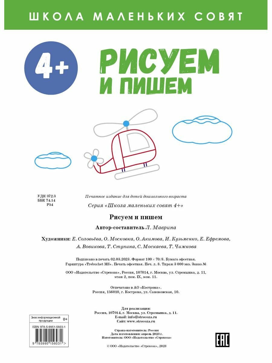 Школа маленьких совят. 4+. Рисуем и пишем (Маврина Лариса Викторовна); Стрекоза, 2023