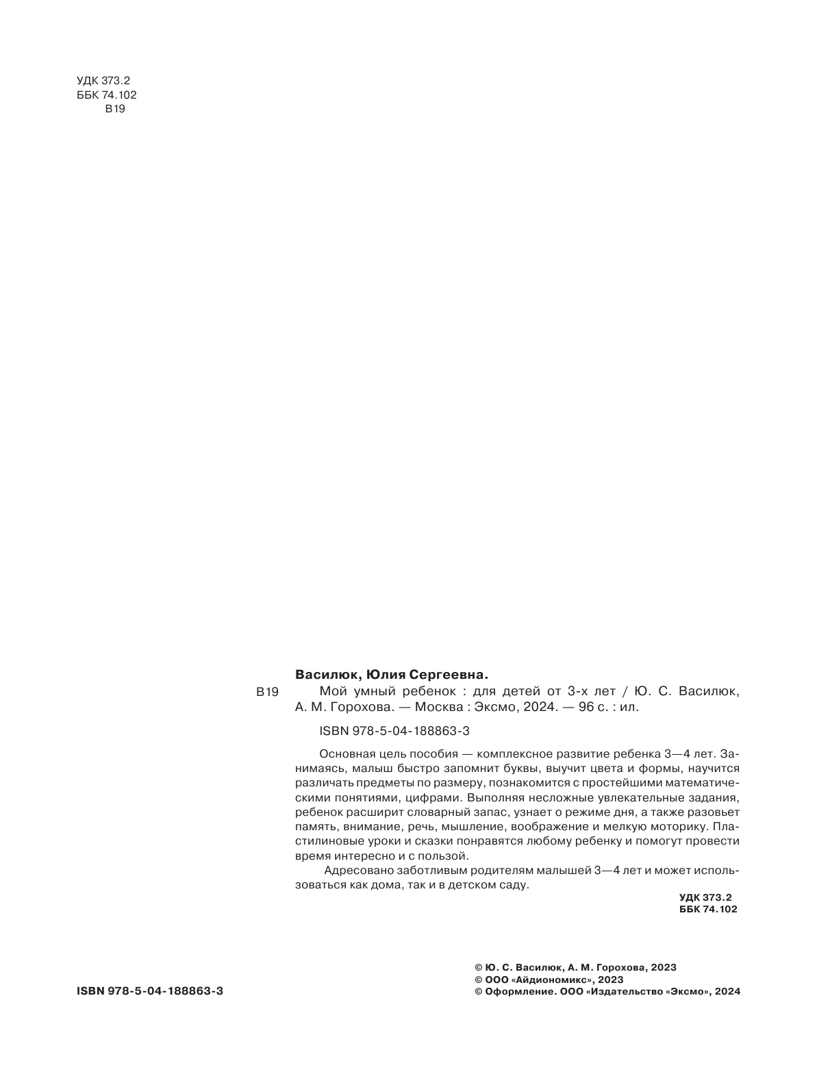 Мой умный ребенок: от 3-х лет (Горохова Анна Михайловна, Василюк Юлия Сергеевна); ООО "Издательство "Эксмо", 2023