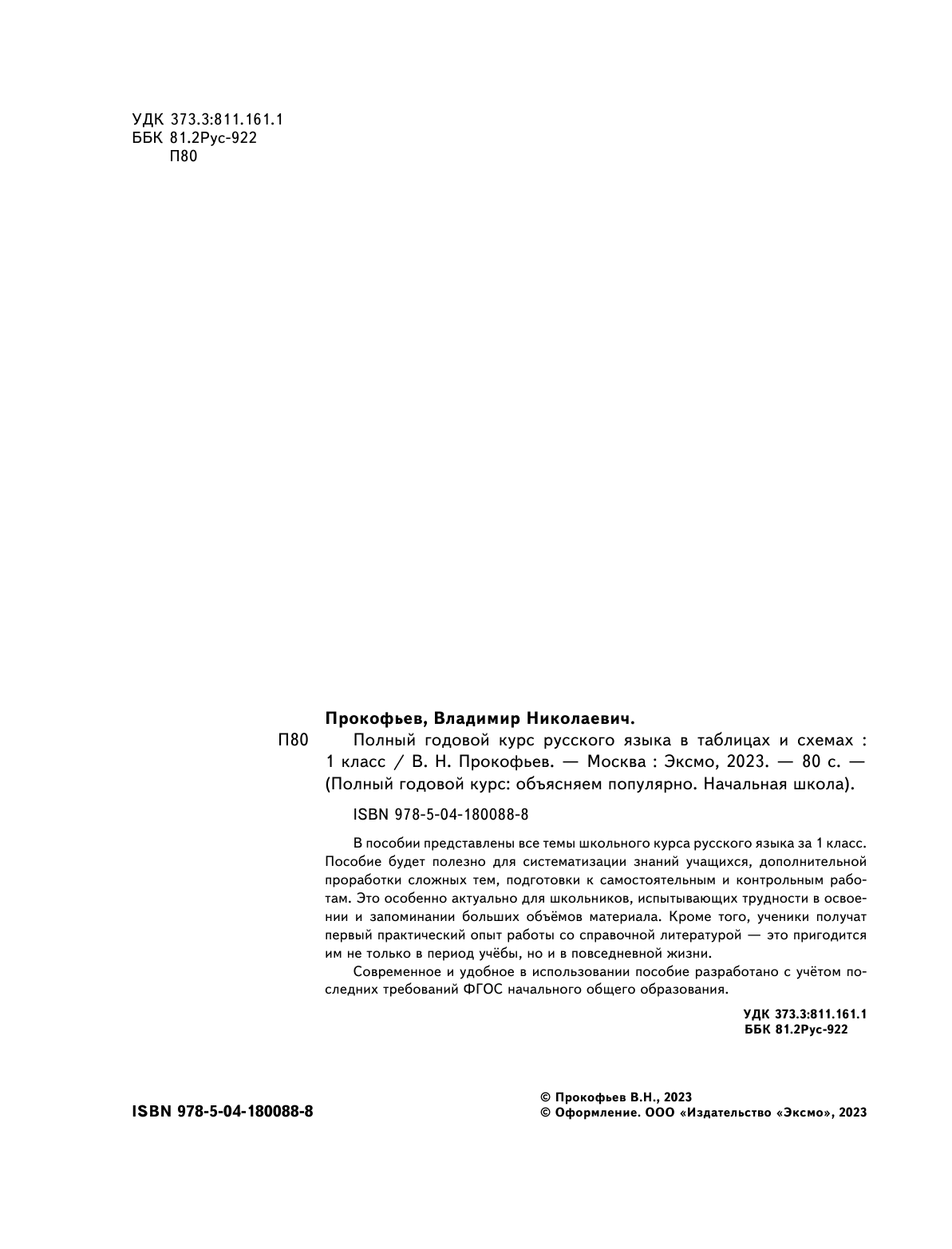 Полный годовой курс русского языка в таблицах и схемах: 1 класс (Прокофьев Владимир Николаевич); ООО "Издательство "Эксмо", 2023