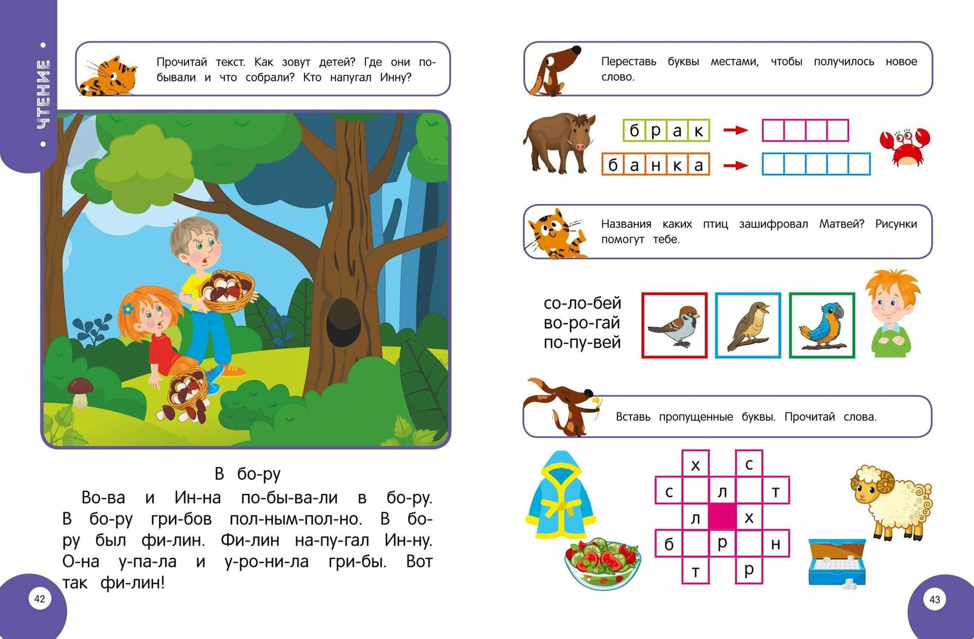 Книга заменит множество развивающих пособий для детей 6—7 лет. Выполняя интересные, доступные игровые задания вместе с мамой и тратя на это 25—30 минут в день, ребёнок будет решать простейшие примеры и задачи на сложение и вычитание, сможет самостоятельно прочесть слоги, слова, предложения и небольшие тексты, научится писать печатные буквы и цифры, выучит первые английские слова, сгруппированные по темам, разовьёт память, внимание, речь, мышление, воображение, подготовит руку к письму, углубит и расширит свои познания о теле человека.