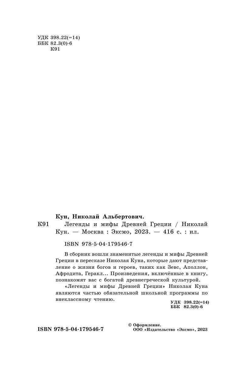Легенды и мифы Древней Греции (Кун Николай Альбертович); ООО "Издательство "Эксмо", 2023