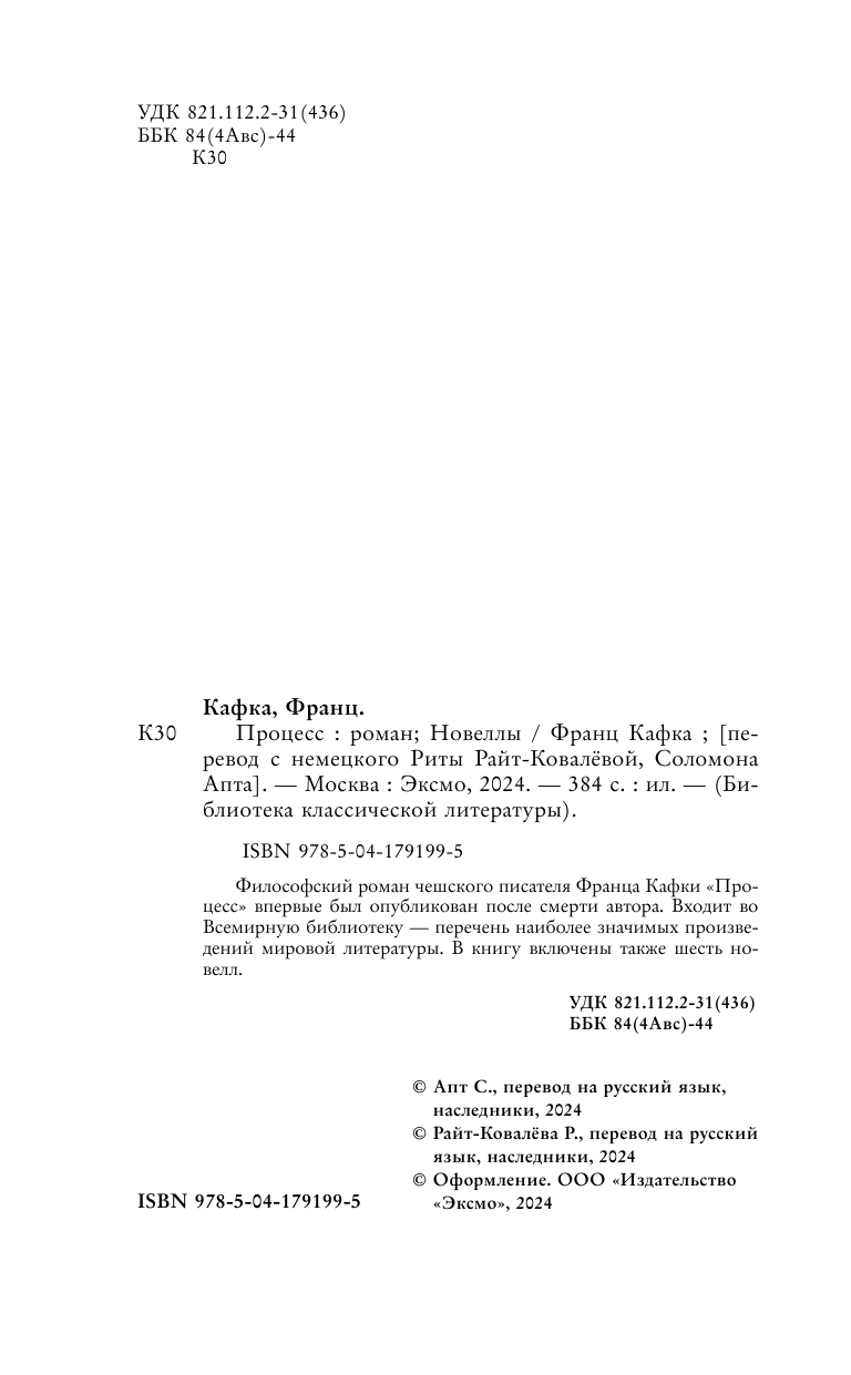Книга: Процесс. Новеллы (Кафка Франц); ООО "Издательство "Эксмо", 2024