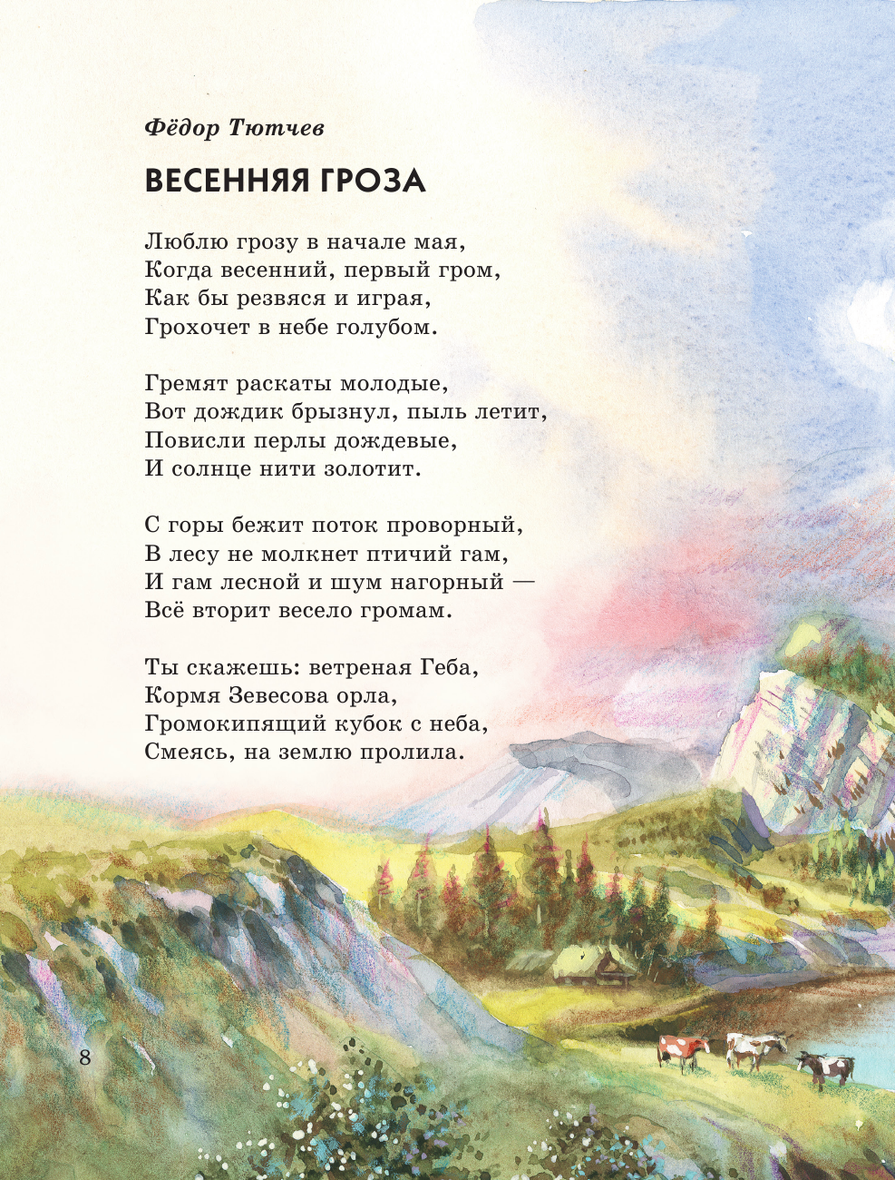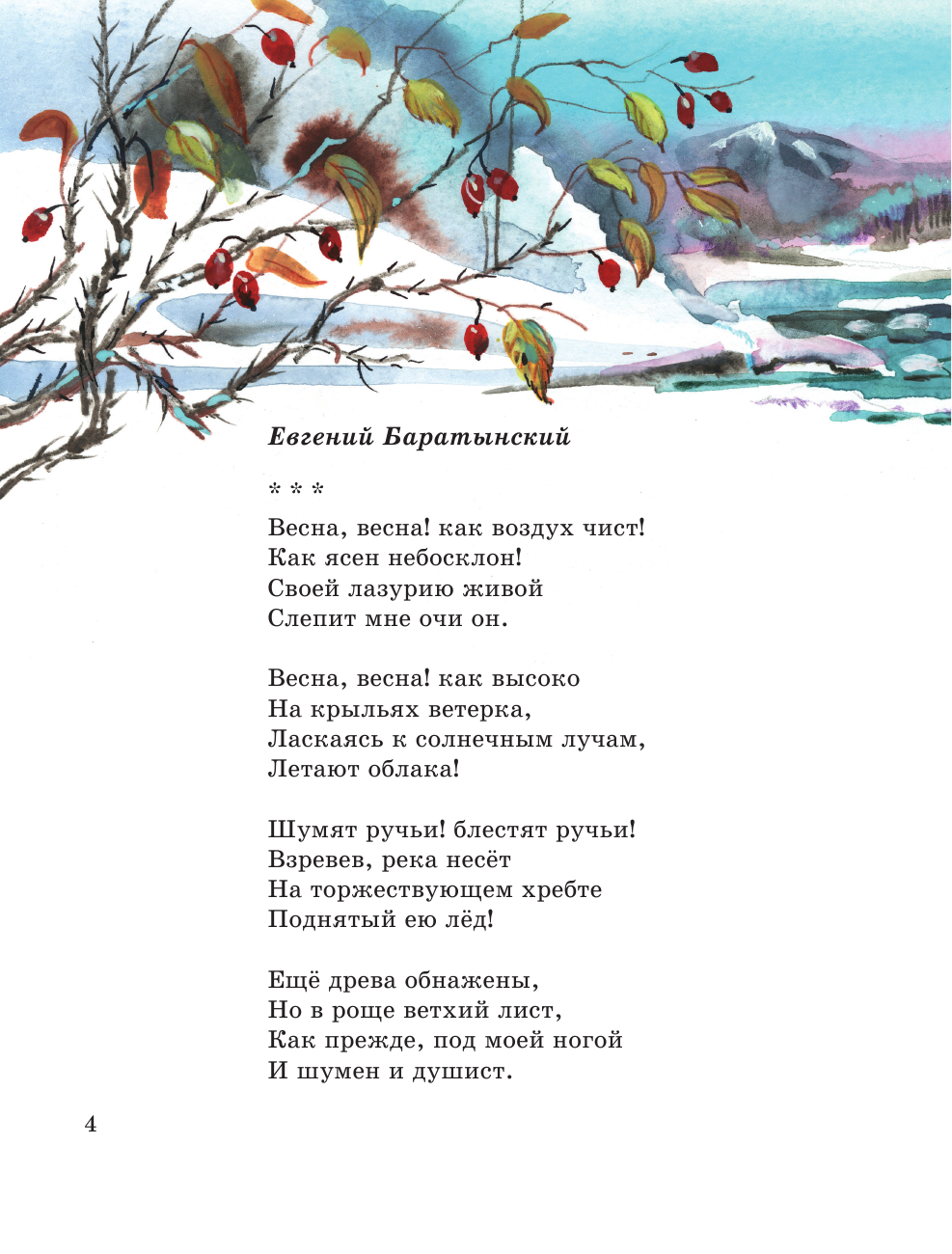 Красочный сборник содержит известные стихотворения оприроде таких русских поэтов, как Василий Жуковский, Александр Пушкин, Сергей Есенин, Александр Блок, Афанасий Фет, Фёдор Тютчев, Алексей Плещеев, Евгений Баратынский, Евгения Трутнева. На страницах вы встретите яркие строчки о каждом времени года: вдохновляющей весне, солнечном или озорном и дождливом лете, золотой осени, прекрасной и сказочной зиме. Книгу дополняют цветные выразительные иллюстрации российского художника Владимира Канивца.