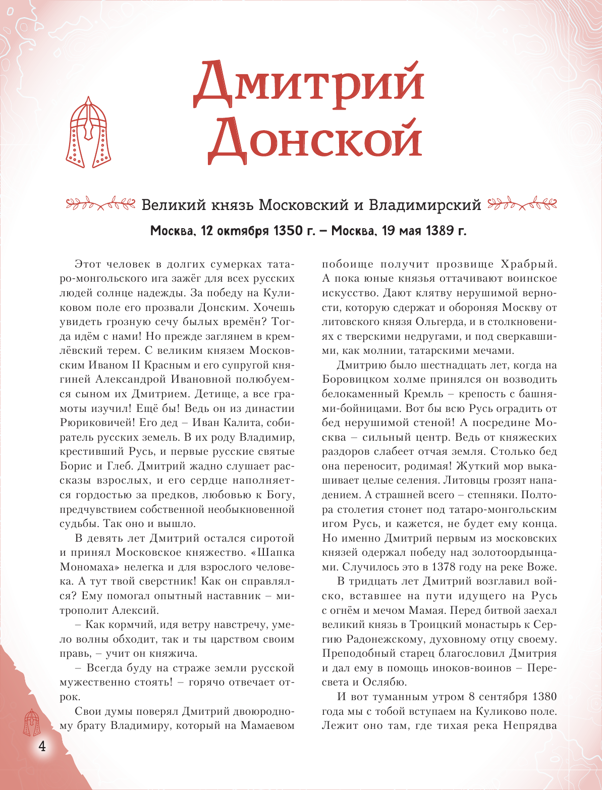Тогда открывайте эту книгу! В каждом из 20 биографических рассказов, адаптированных для детей 7—10 лет, — невероятный образец силы воли и стойкости характера, мотивирующий ребят на собственные свершения. Их сопровождают красочные полосные иллюстрации и занимательные факты, чтобы знакомиться с выдающимися соотечественниками было наглядно и увлекательно. А ещё это неповторимый подарок для всех, кто гордится историей и культурой своего Отечества!