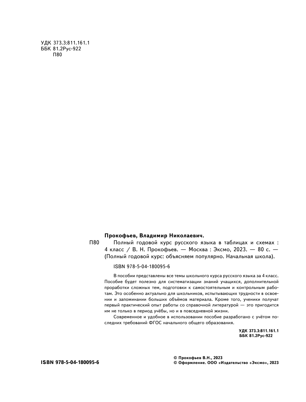 Полный годовой курс русского языка в таблицах и схемах: 4 класс (Прокофьев Владимир Николаевич); ООО "Издательство "Эксмо", 2023