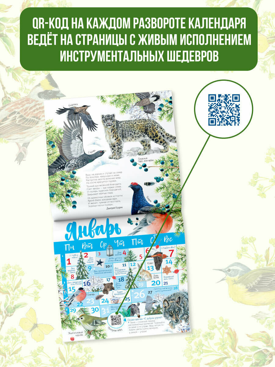 Дополняют каждый месяц OR-коды с голосами птиц и зверей.