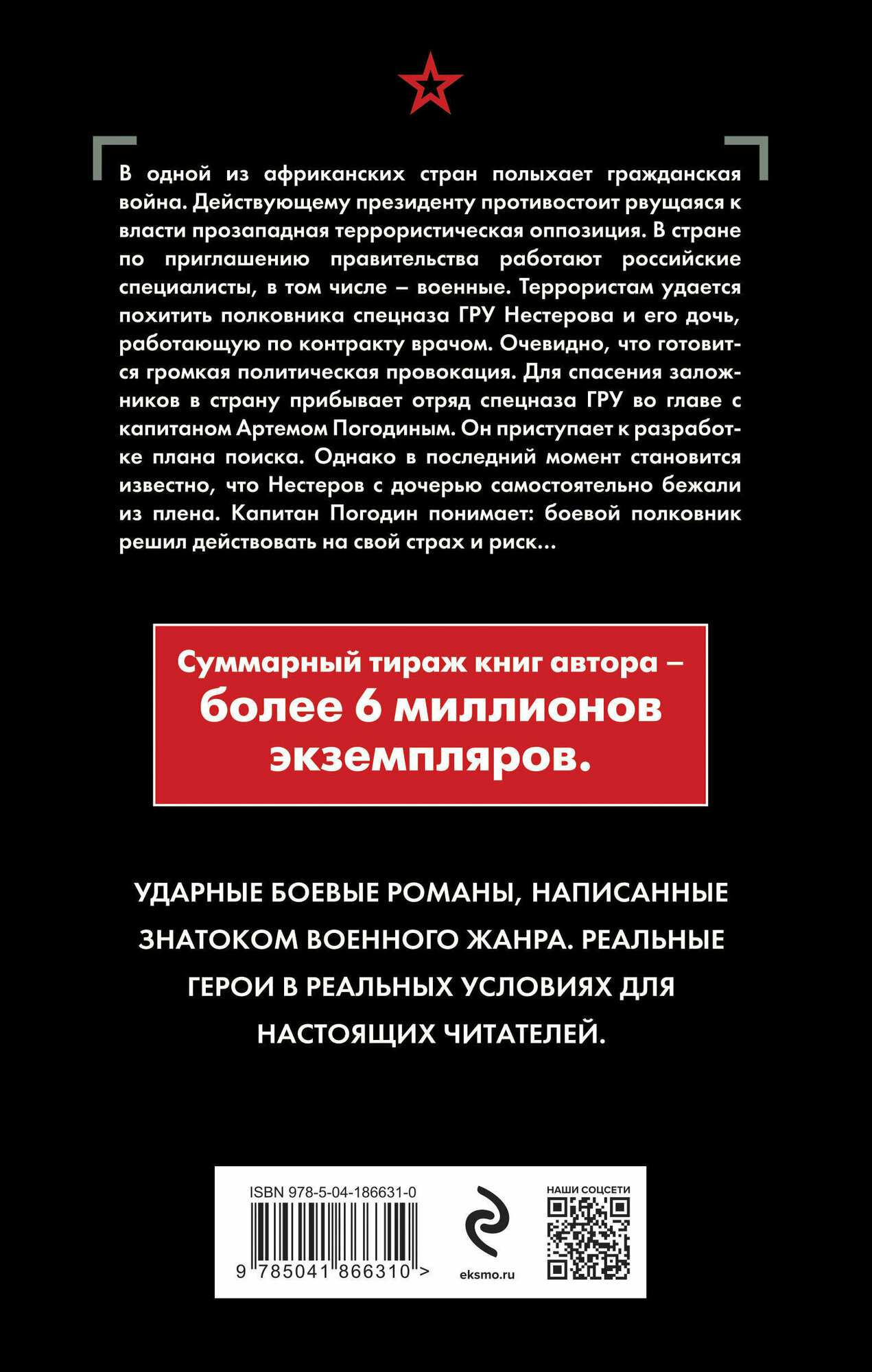 В одной из африканских стран полыхает гражданская война. Действующему президенту противостоит рвущаяся к власти прозападная террористическая оппозиция. В стране по приглашению правительства работают российские специалисты, в том числе — военные. Террористам удается похитить полковника спецназа ГРУ Нестерова и его дочь, работающую по контракту врачом. Очевидно, что готовится громкая политическая провокация. Для спасения заложников в страну прибывает отряд спецназа ГРУ во главе с капитаном Артемом Погодиным. Он приступает к разработке плана поиска. Однако в последний момент становится известно, что Нестеров с дочерью самостоятельно бежали из плена. Капитан Погодин понимает: боевой полковник решил действовать на свой страх и риск…