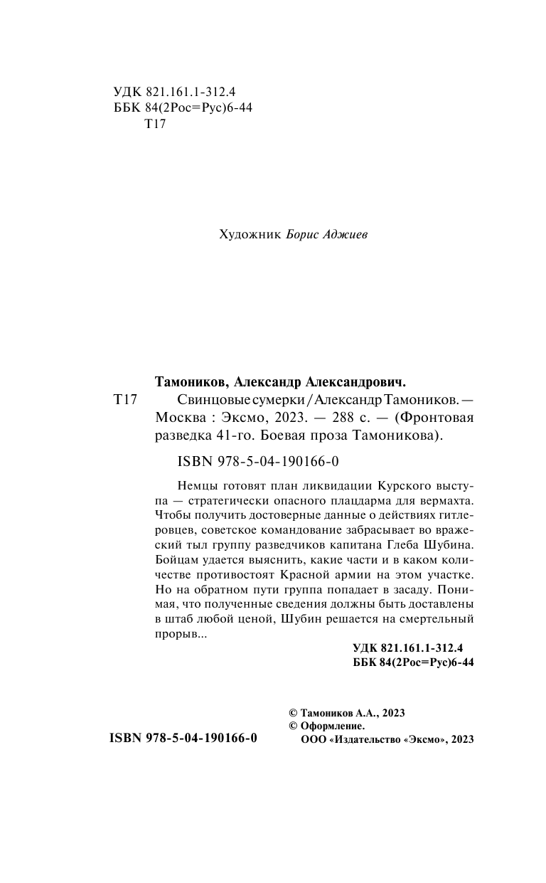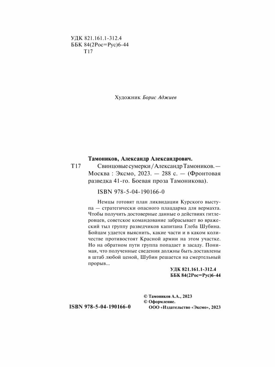 Книга: Свинцовые сумерки (Тамоников Александр Александрович); ООО "Издательство "Эксмо", 2023
