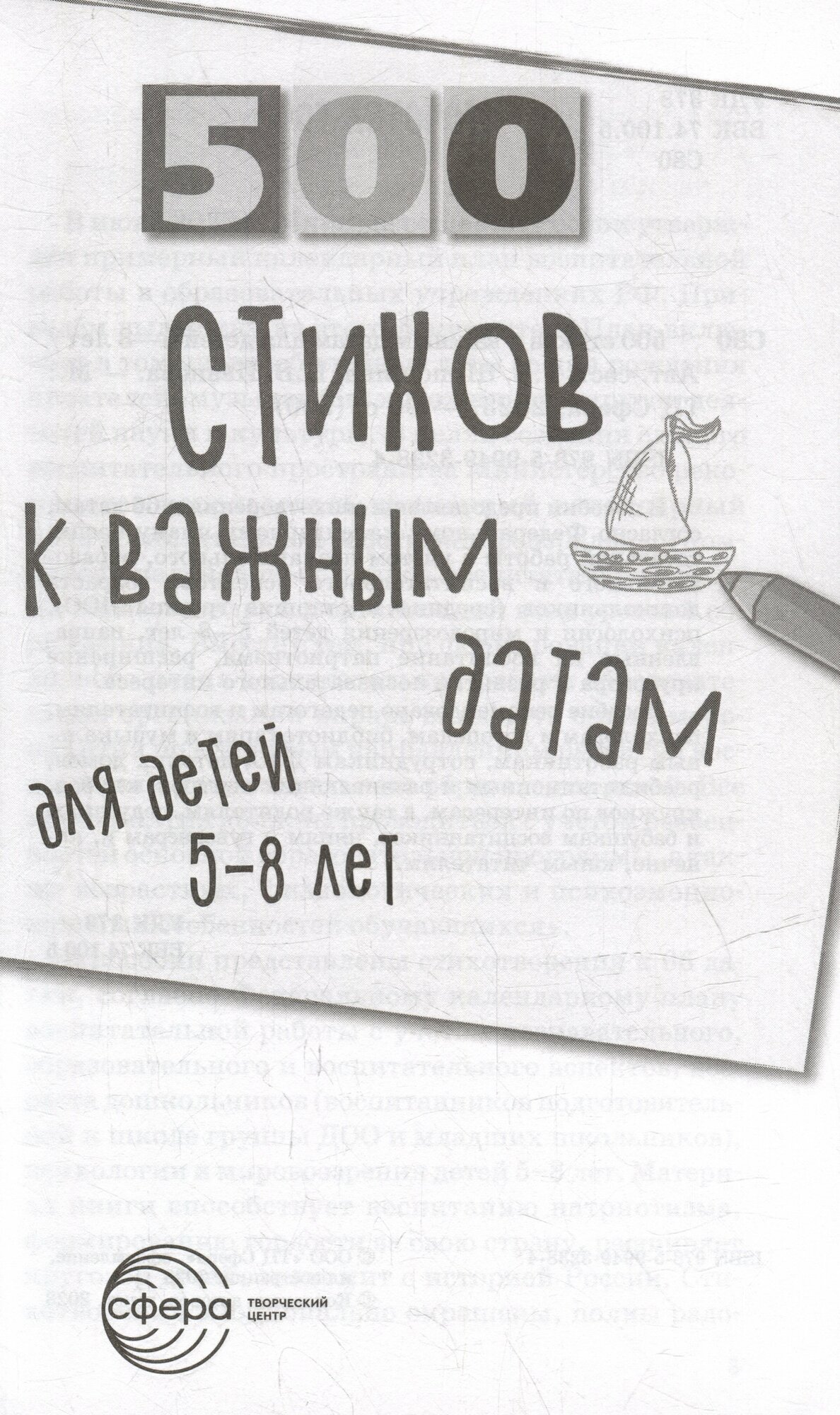 Сервис сравнения цен СкидкаГИД предлагает сравнить цены на товар «Книга: 500 стихов к важным датам для детей 5-8 лет (Иванова Наталья Владимировна, Левина Людмила Анатольевна, Дурягина Людмила Владимировна); ТЦ Сфера, 2021»