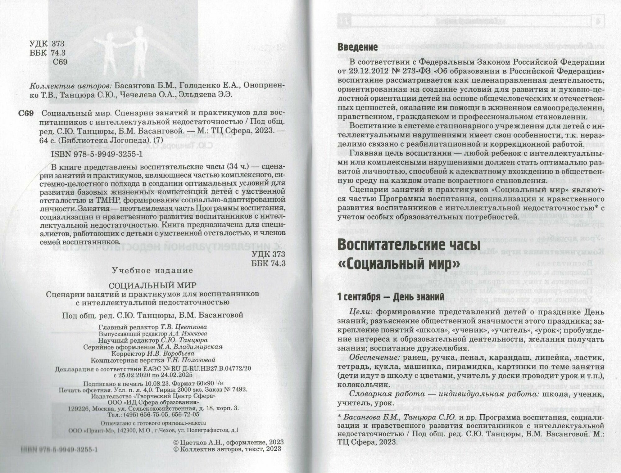 Социальный мир. Сценарии занятий и практикумов для воспитанников с интеллектуальной недостаточностью (Басангова Б.М., Голоденко Е.А., Оноприенко Т.В.); Творческий центр Сфера Издательство, 2023