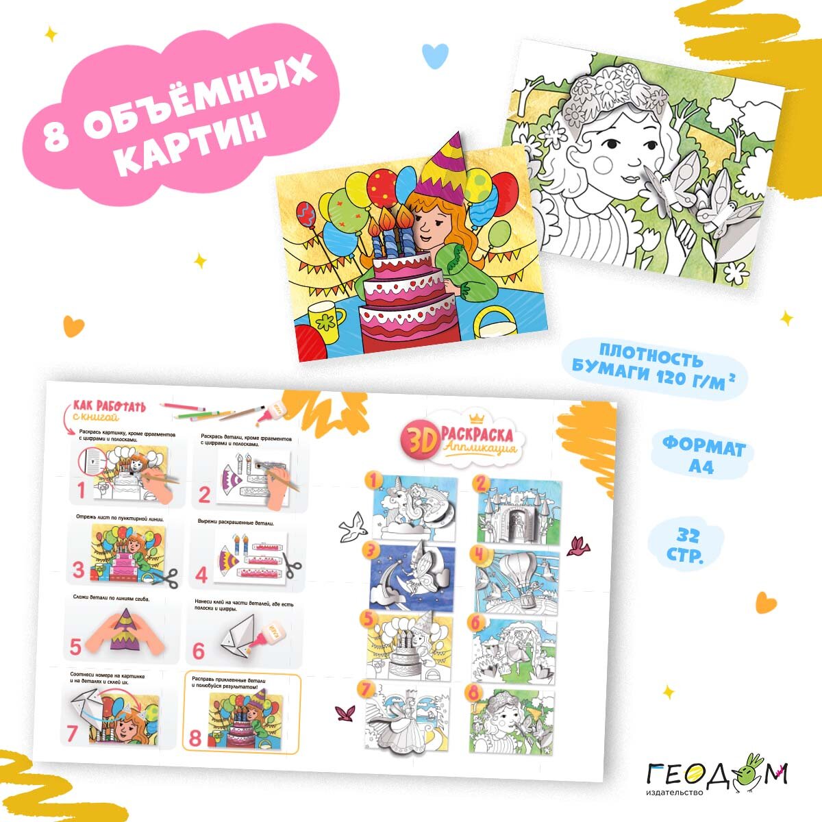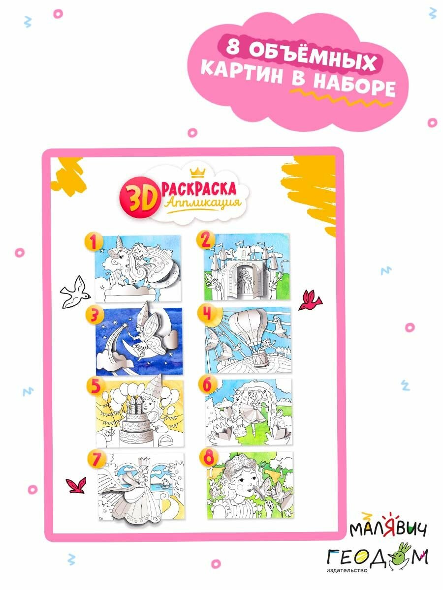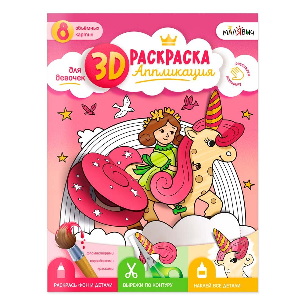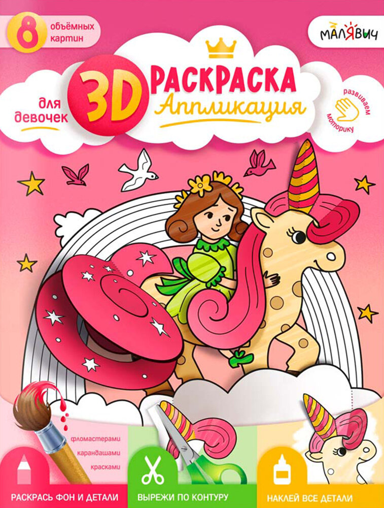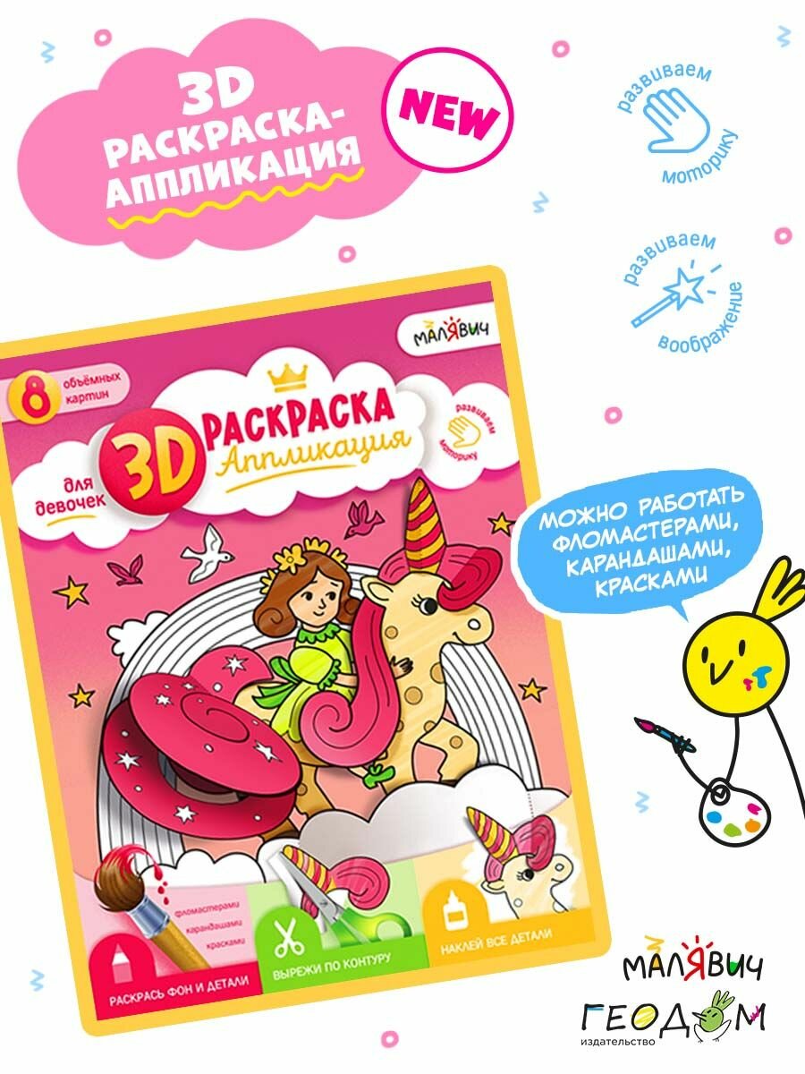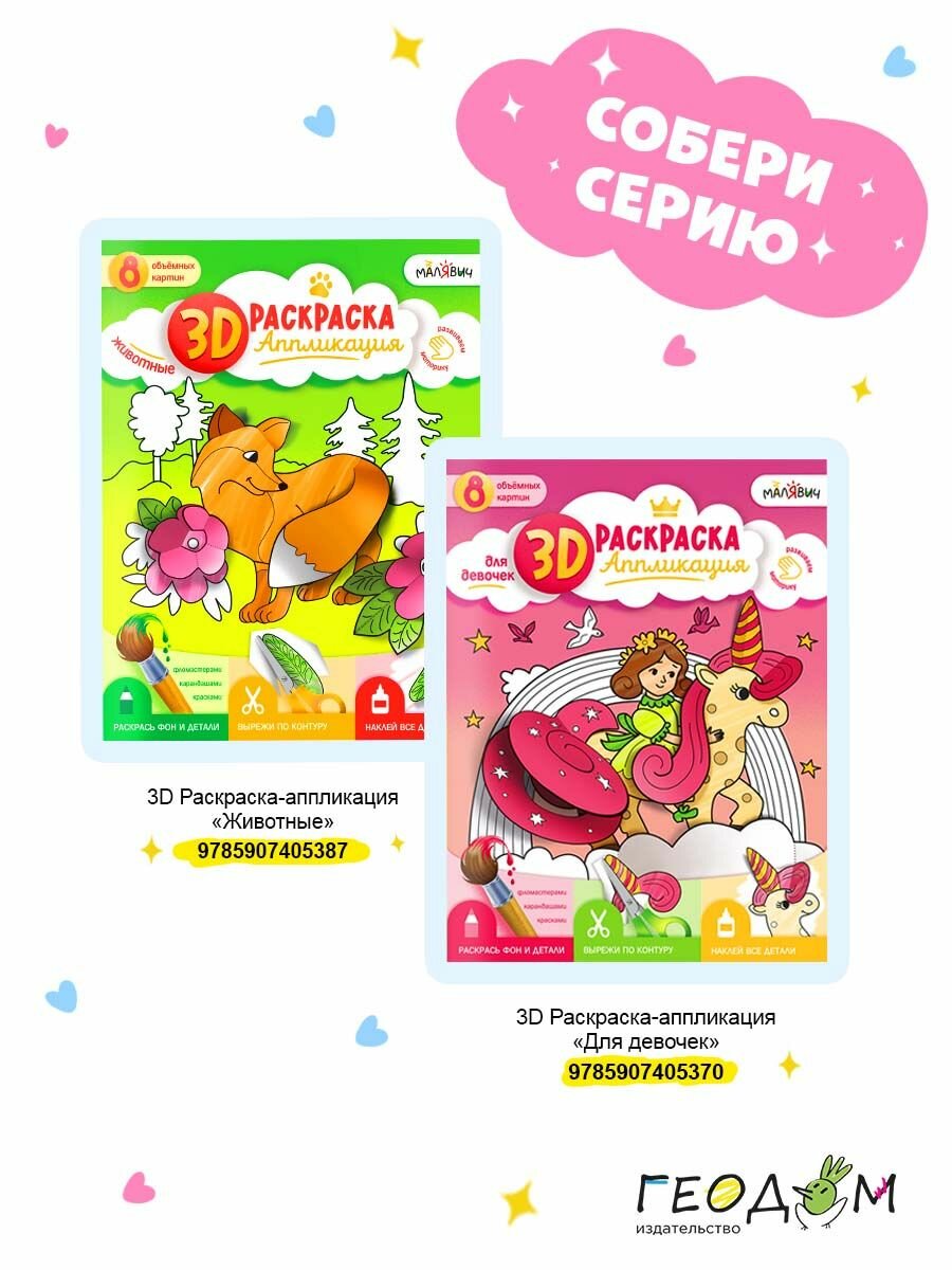 3D-раскраска-аппликация. Для девочек (Казейкина Екатерина В. (художник)); Геодом, 2023
