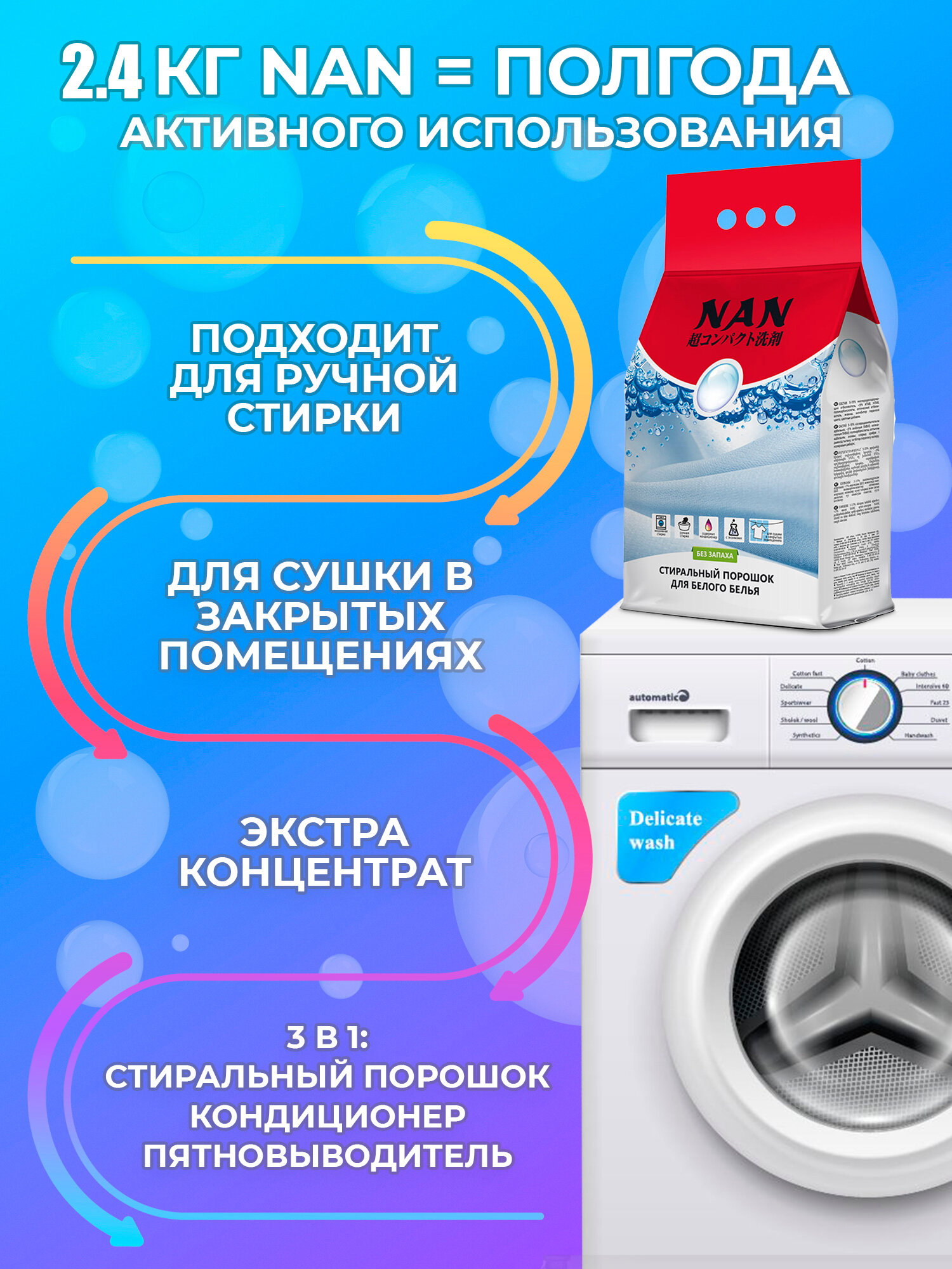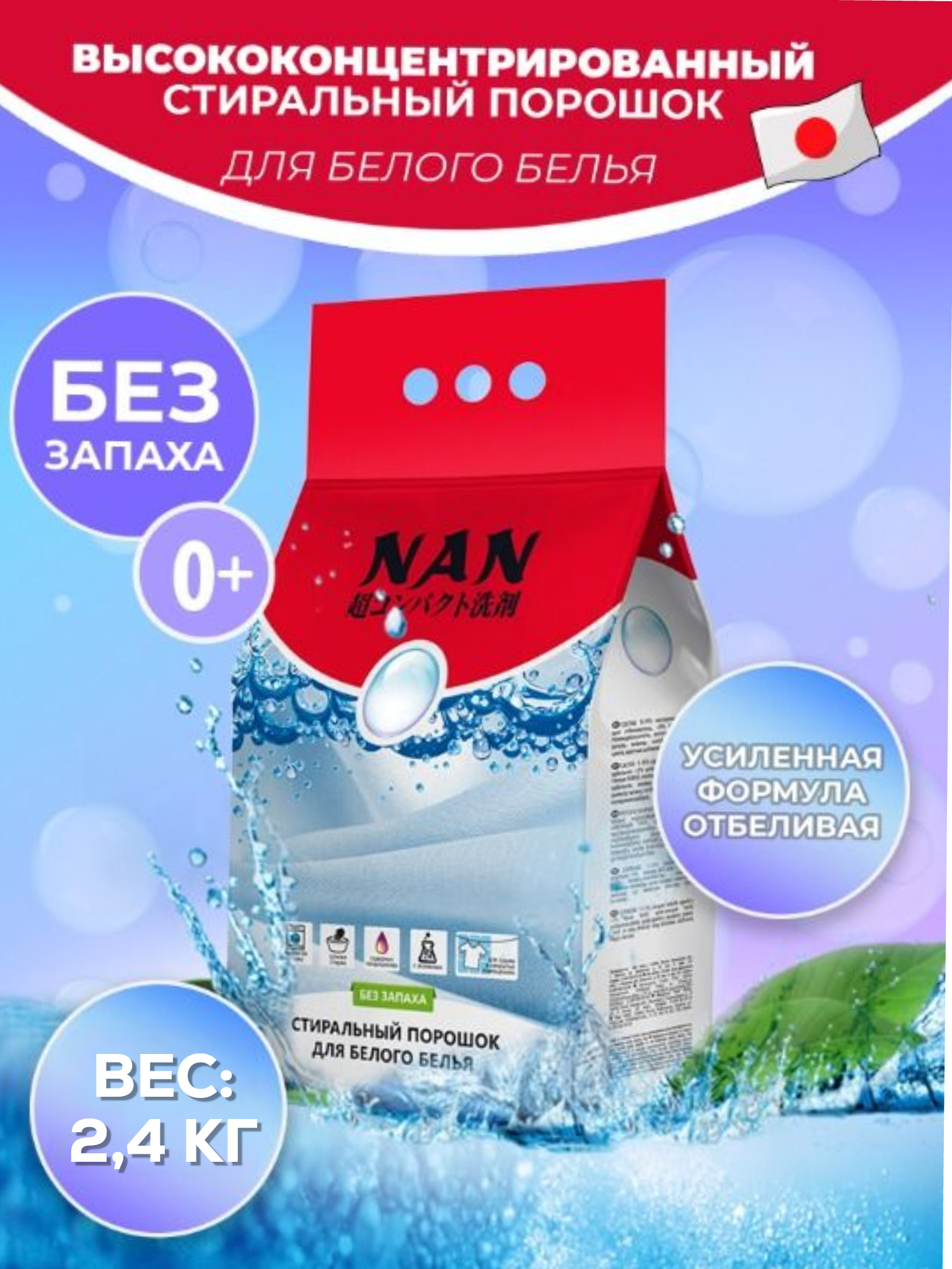 Стиральный порошок NAN для белого белья 2.4кг Нан