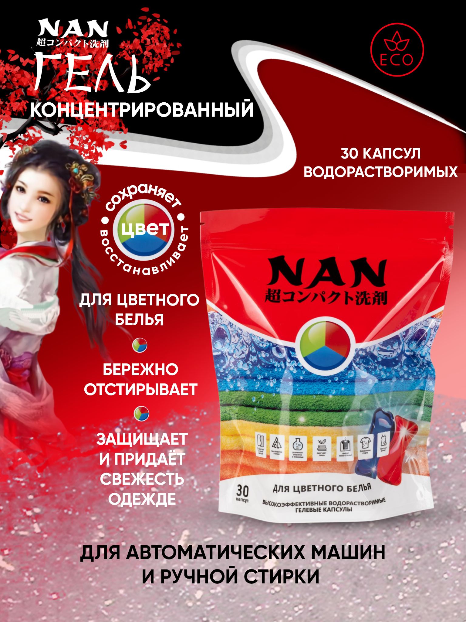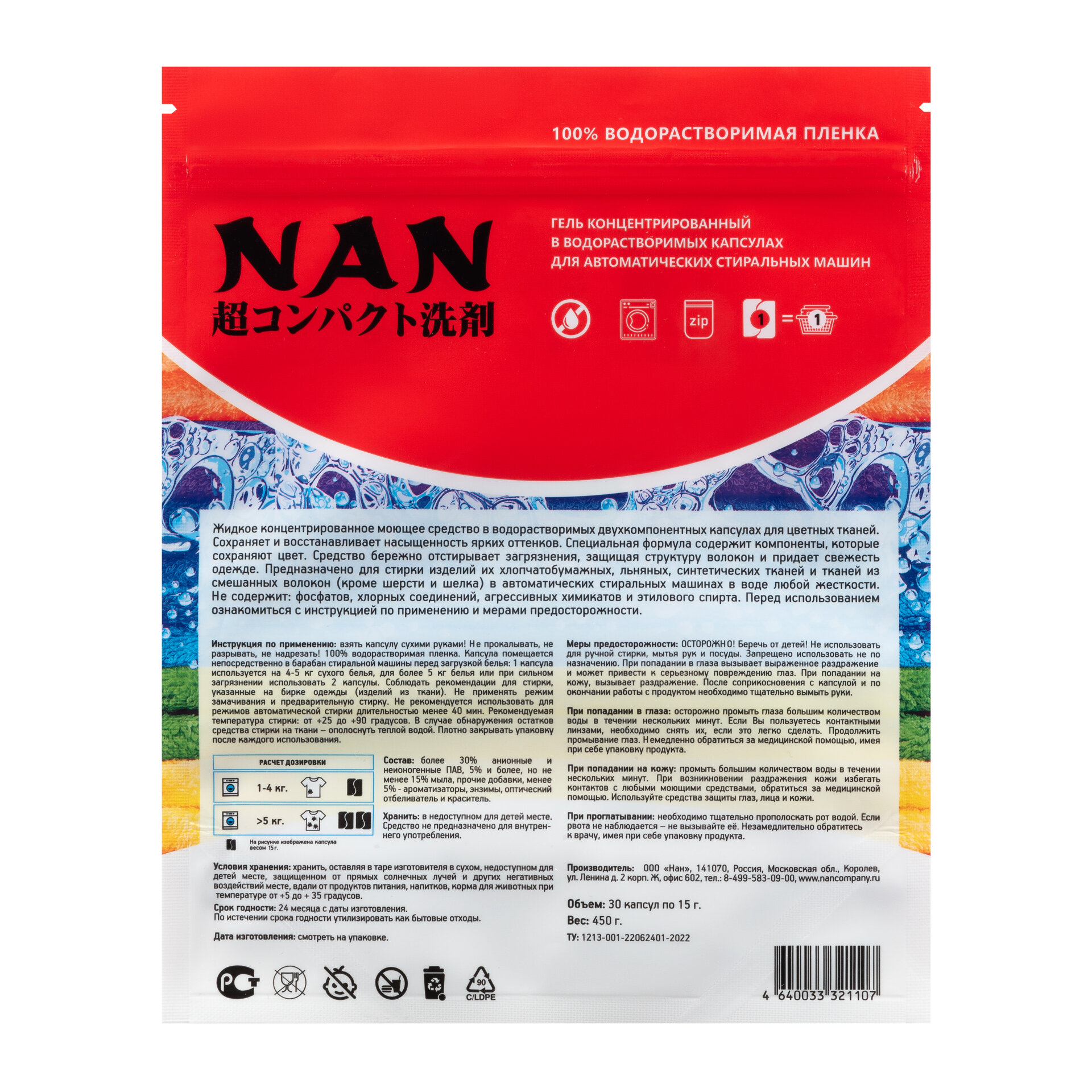 Капсулы для стирки NAN для цветного белья 15г*30 капсул Нан