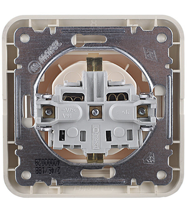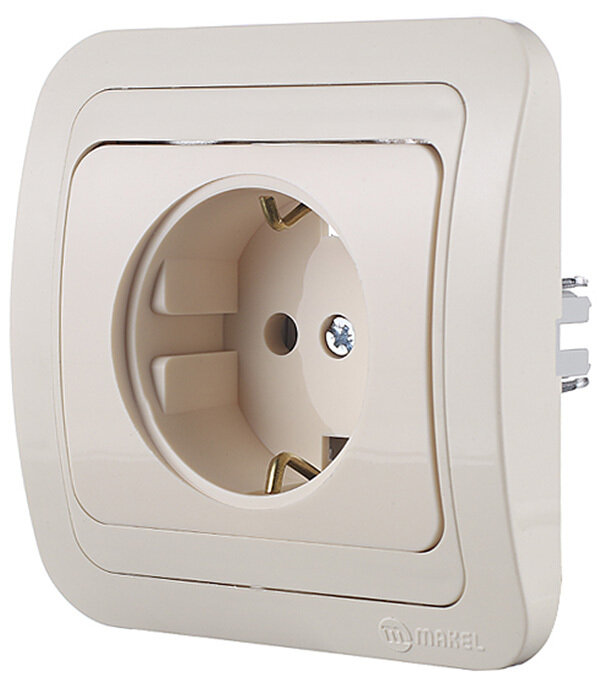 Розетка MAKEL "Mimoza" с заземляющим контактом кремовая