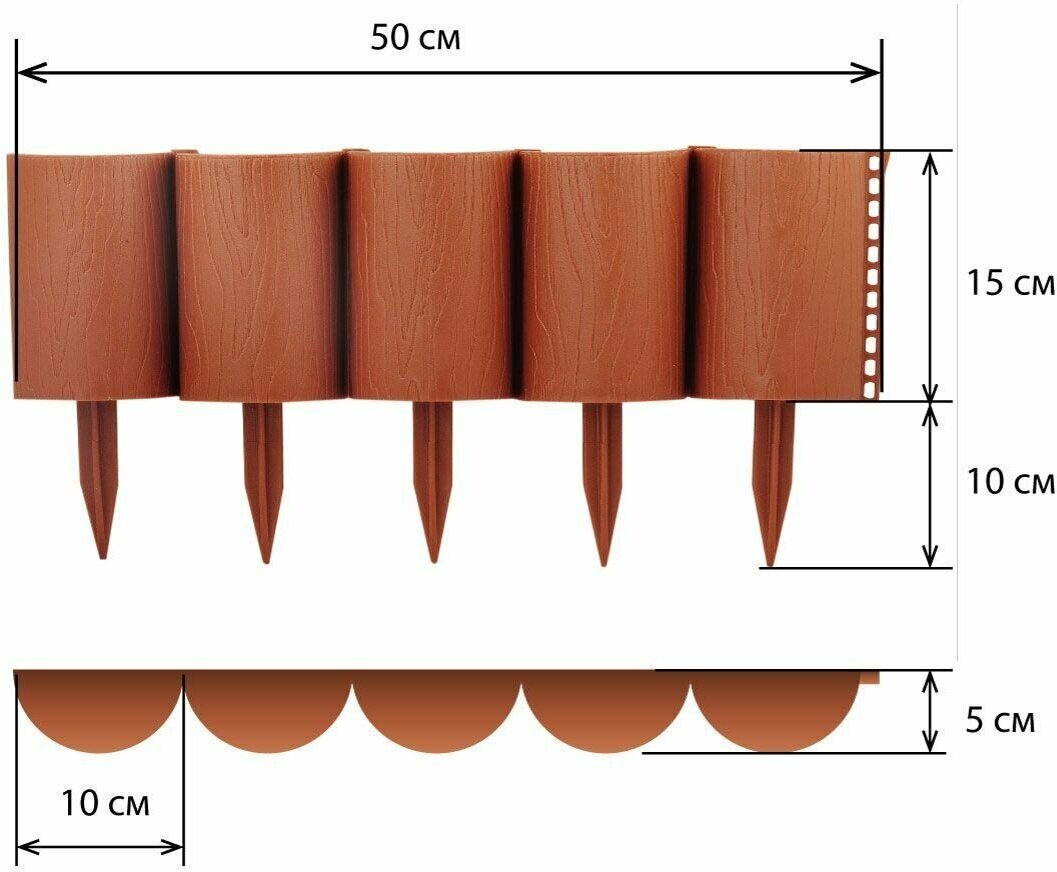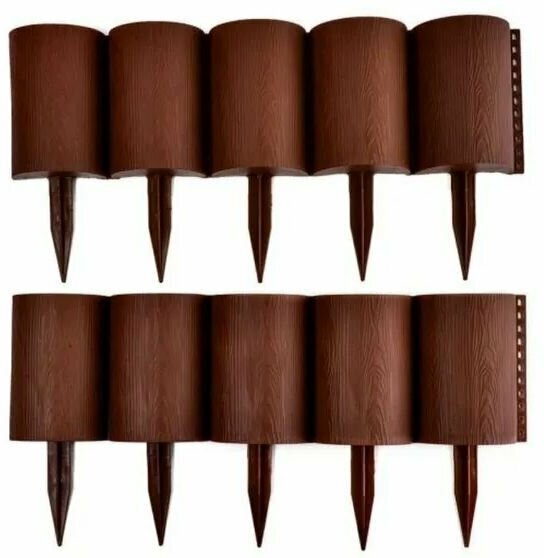 Ограждение Садовый конструктор имитирует деревянные столбики высотой 15 см. Бордюр изготовлен из прочного полипропилена, в коричневом цвете.