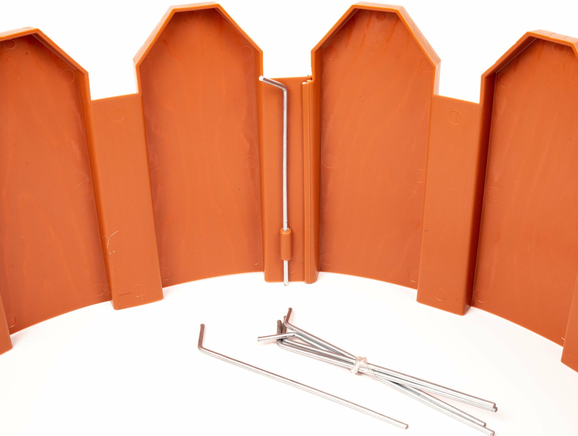 Ограждение Дачник - комплект из шести одинаковых пластиковых сегментов, напоминающих по форме и фактуре традиционный деревянный штакетник. Невысокий декоративный заборчик используется для украшения приусадебных и дачных участков, создания грядок и клумб.