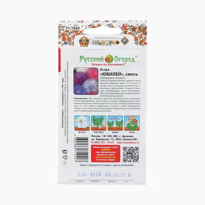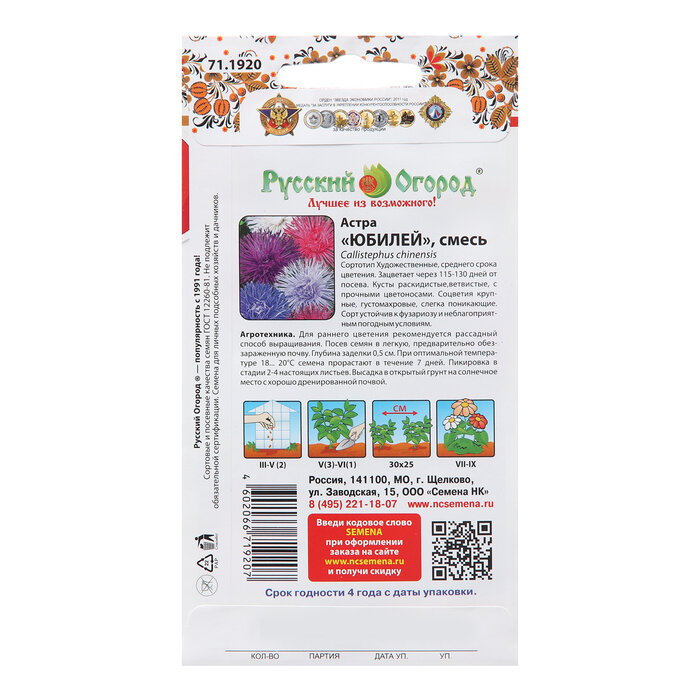 Астра Юбилей смесь Русский огород Юбилей 200%