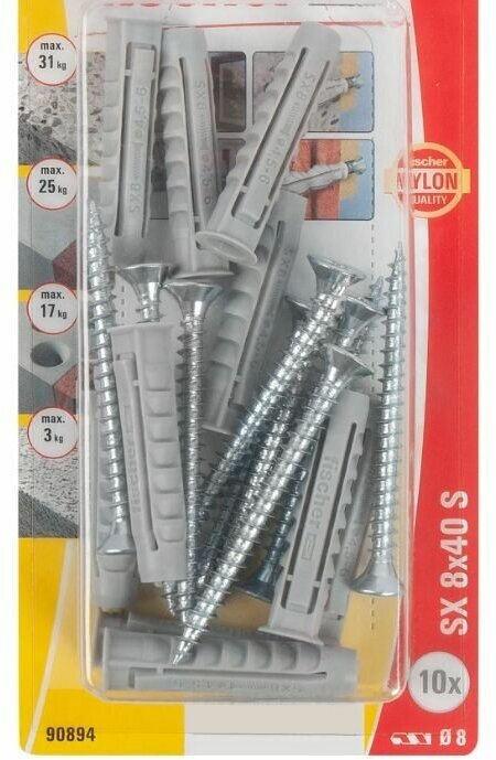 На сегодняшний день товар «Дюбель Fischer SX 8X40 для полнотелых материалов 10 шт.» можно купить с кешбеком в 1 магазине: Яндекс.Маркет