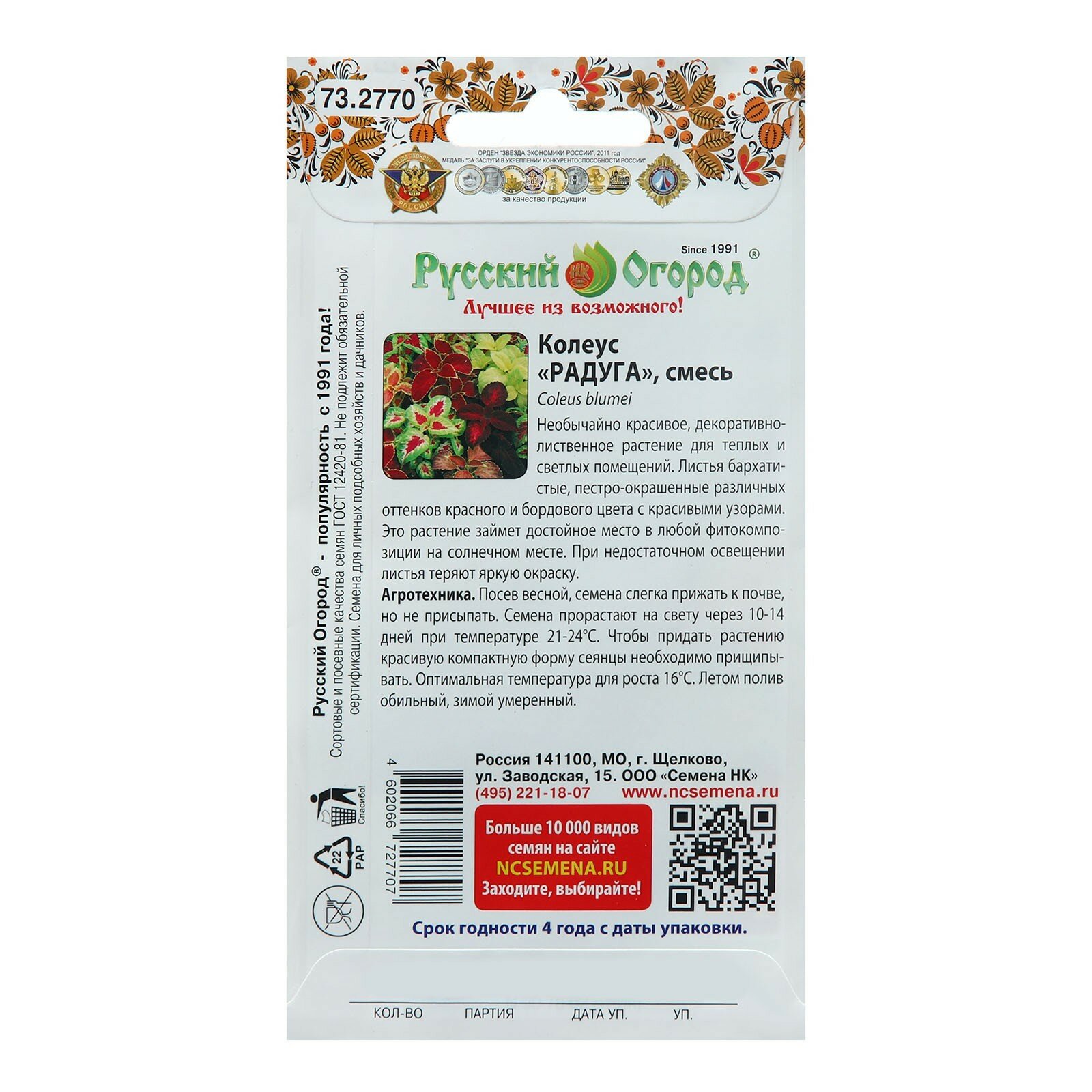 - Бренд "Русский огород" — гарантия качества.