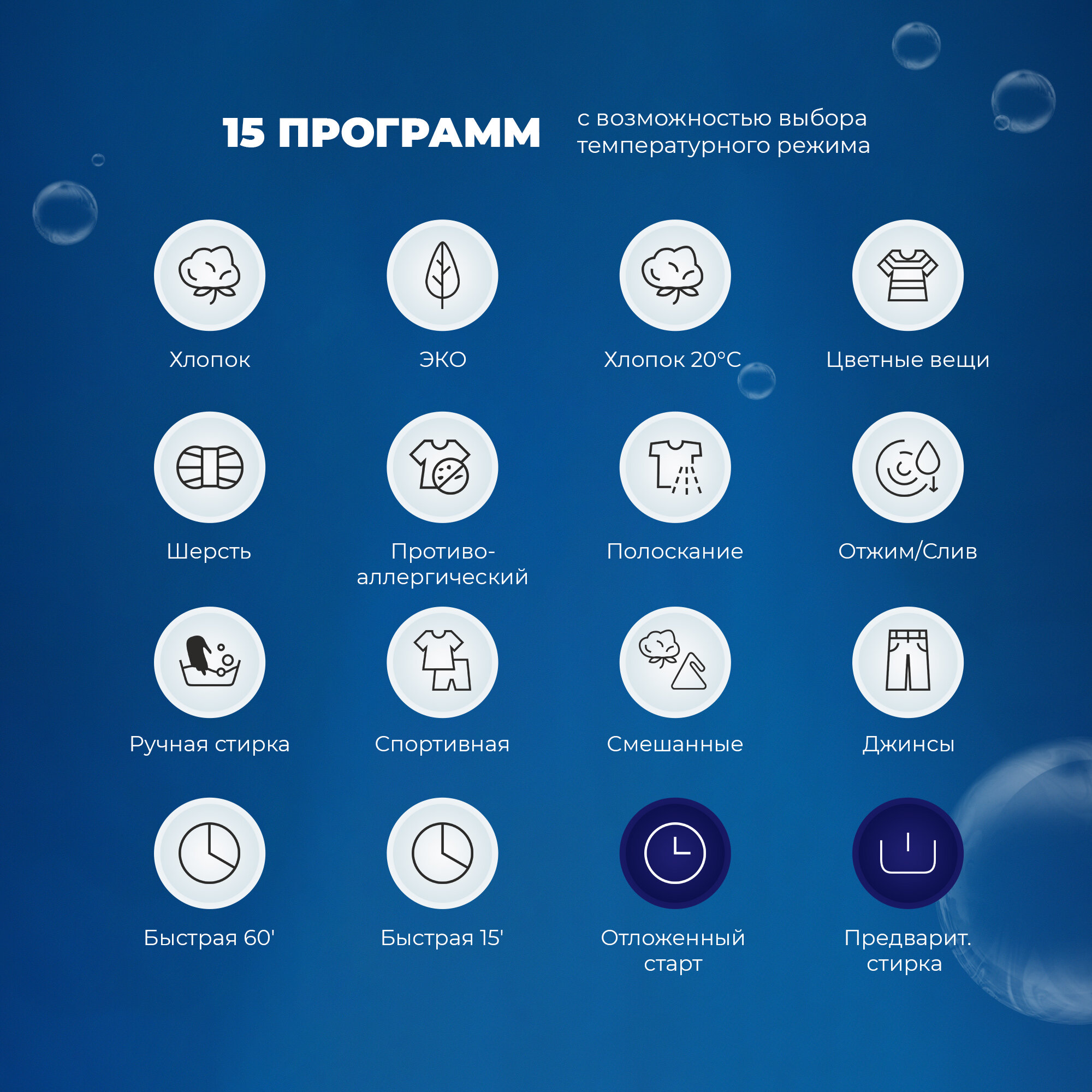 | Количество программ стирки | 15 |