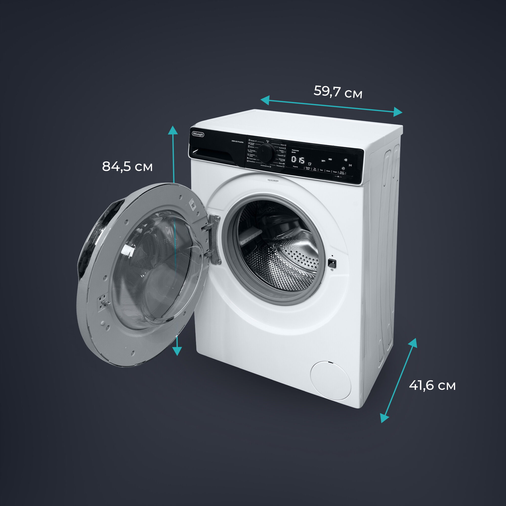 Стиральная машина DeLonghi DWM 624 VI ALICIA 42 см 6 кг отсрочка старта 15 программ половинная загрузка Eco-Logic (размер: узкая)