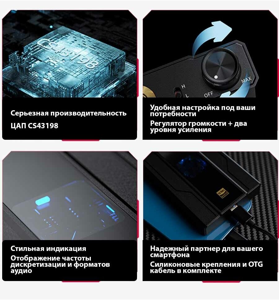 Если в общем говорить, то универсальная вещь - можно использовать как стационарный цап и усилитель, можно носить с собой в кармане в связке с источником - так думал я) Реальная пользование показывало, что для переноса не самый удачный размер и вес. Свисток-цапик будет куда удобнее для переноски. Для прослушивания дома у компа или лежа на диванчике самое то. Дизайн стильный, приятный на ощупь, все лаконично без излишеств. Крутилка звука тугая, ребристая, приятно крутить, но и случайно не крутанешь. Теперь о самом важном, о звуке. Никаких посторонних шумов, шипений и т.д не производит. Звук хороший и глубокий - возможно, местами теряется детализация в насыщенных звуковых сценах, но не критично. В некоторых композициях объема хочется больше, хотя это индивидуально) Островаты высокие частоты, местами колкие - не для любителей лампового звука. Низкие частоты на мой взгляд хорошие и сбалансированные, их и не много и не мало, нет перекачки бассом. Опять таки мое личное мнение, не факт, что у всех так будет - не очень хорошая связка выходит с ламповыми усилителями(китайскими) - звук вроде бы и детален и чист, лампы сглаживают остроту подачи, басик становится более мягкий бубнящий, но долго слушать не кайф, устаешь после пары композиций, синтетичность превалирует(субъективщина). Для информации - установлено 2 чипа оу SGMicro SGM8262-2, которые если бы можно было самостоятельно заменять, дало бы вариантивность и возможность играть с звуковой подачей индивидуально - почему этого нет удивительно, ведь это даже в совсем простеньких портативных китайский усилках реализовано. Комплектные кабели можно охарактеризовать так - хорошо, что они есть, хуже если бы их совсем не было) Длина их слишком короткая, хотя бы 20см. Чтобы уровня звука хватало на отключенном гейне, нужно выкрутить регулятор на 80%, иначе только тихо. И это наушники не более от 16 до 50ом. С включенным гейном все ок, становится весьма и весьма громко. Батарея ёмкая, заявленное время без гейна легко отрабатывает. С гейном не проверял. Подводя итог, добавлю, что хоть позиционируется этот цап, как портативный, портативность его заканчивается на журнальном столике или на столе у компа - таскать с собой кирпич ввиде телефона и цапа смогут только самые преданные музыке аудиолюбители.