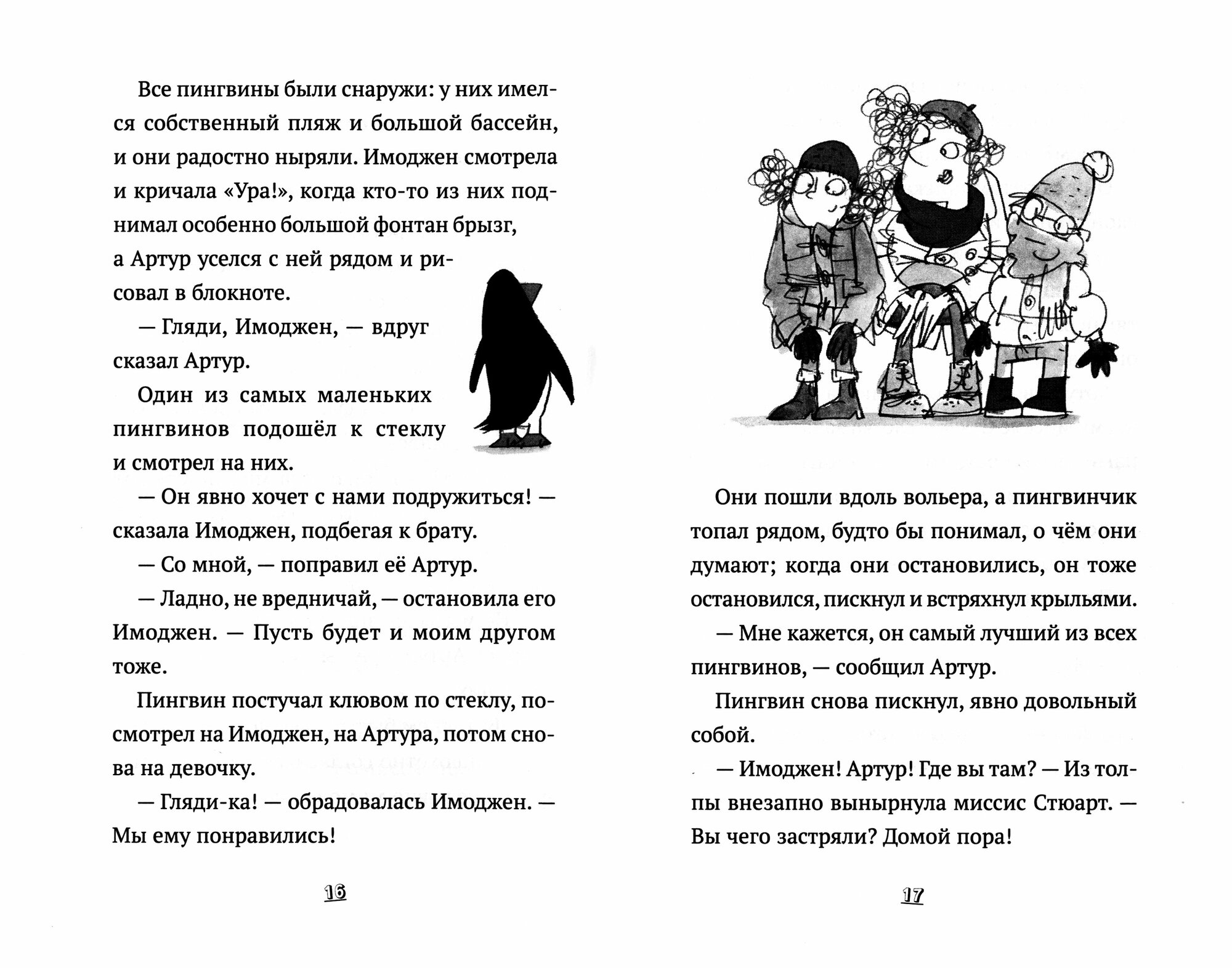 К радости девятилетней Имоджен и её брата Артура, их мама тут же приглашает пингвина приходить в гости когда вздумается. Чего Стюарты не ждут — так это того, что в тот же вечер пингвин появится у них на пороге, с рюкзачком с надписью «Эйнштейн» на спине.