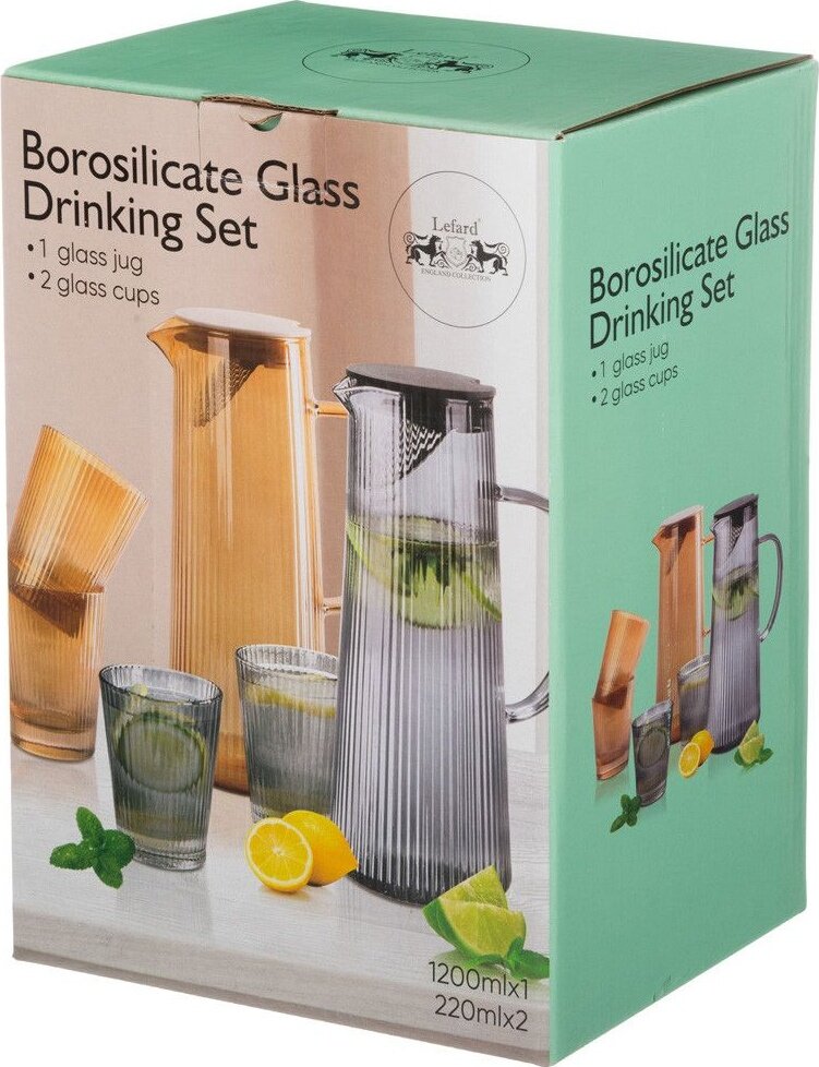 набор питьевой LEFARD 3 предмета: кувшин 125мл + 2 стакана 300мл стекло (172-134)