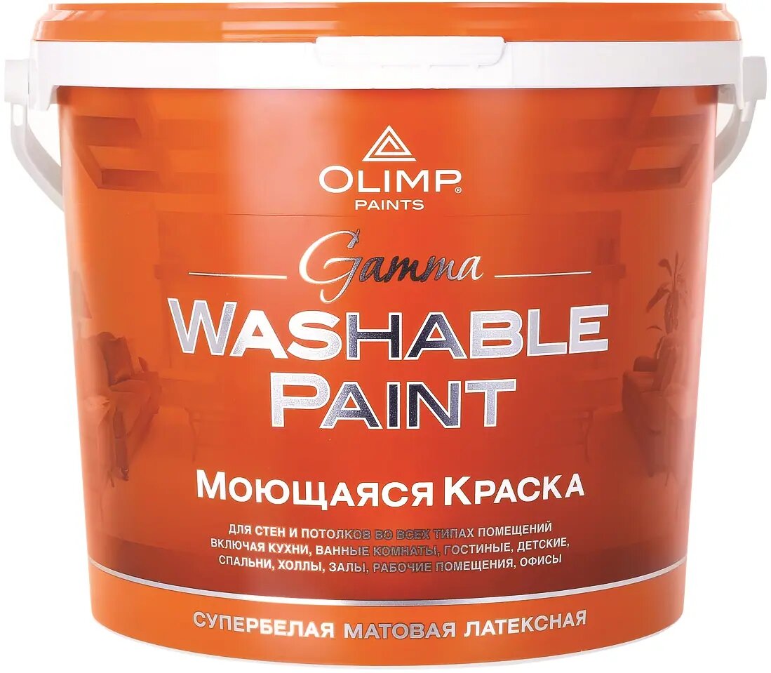 Краска акриловая OLIMP матовая моющаяся белая 2.5 л Gamma