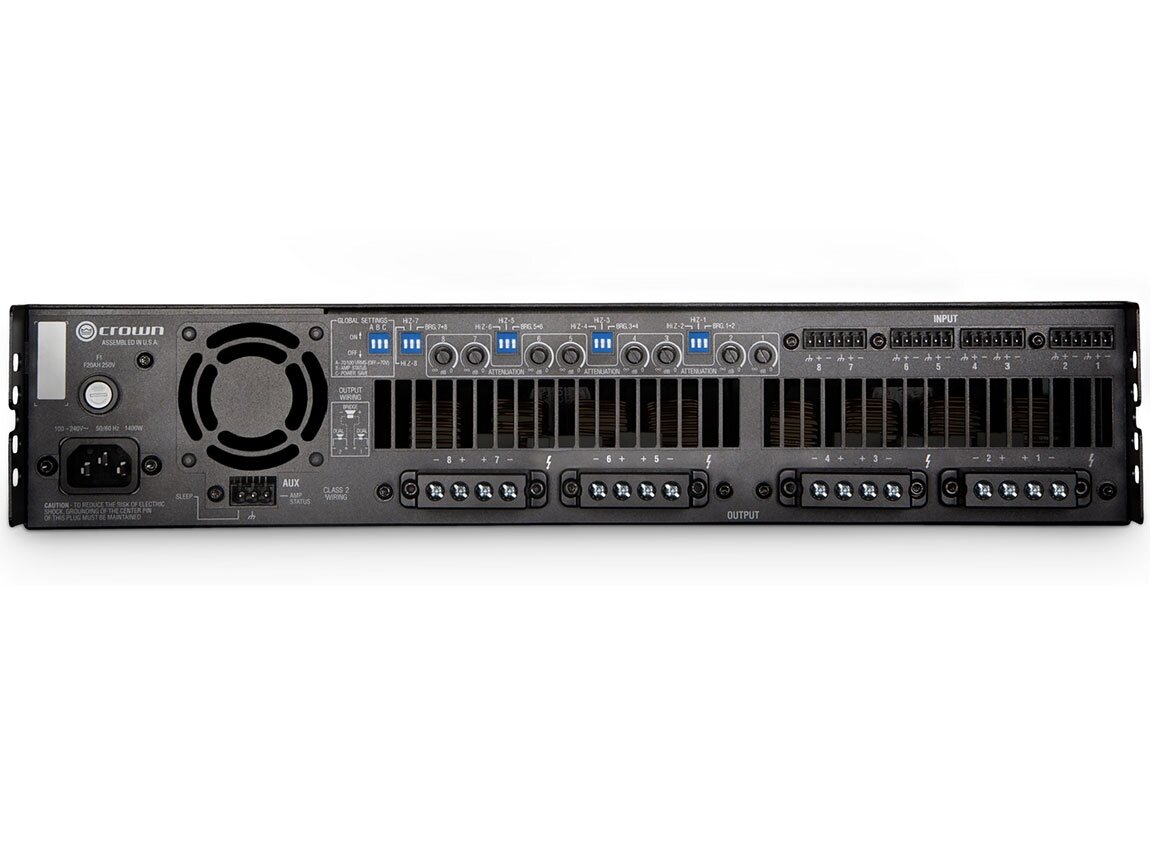 Усилитель Crown DCi 8 600 имеет 8 каналов. Мощность на канал составляет 300Вт•2Ω, 600Вт•4/8Ω, 300В•16Ω, 600Вт•70/100В.