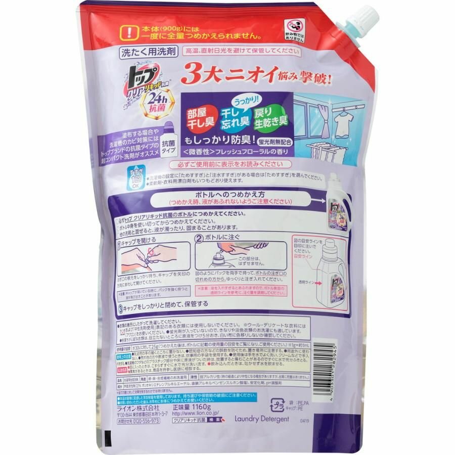 Жидкое средство для стирки Lion антибактериальное топ мягкая упаковка 720 г Жидкое средство для стирки с антибактериальным эффектом ТОП 720 г