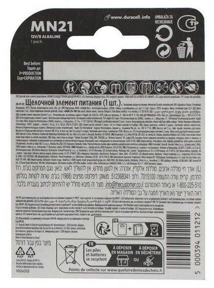 Батарейка Duracell MN21 алкалиновая 1 шт