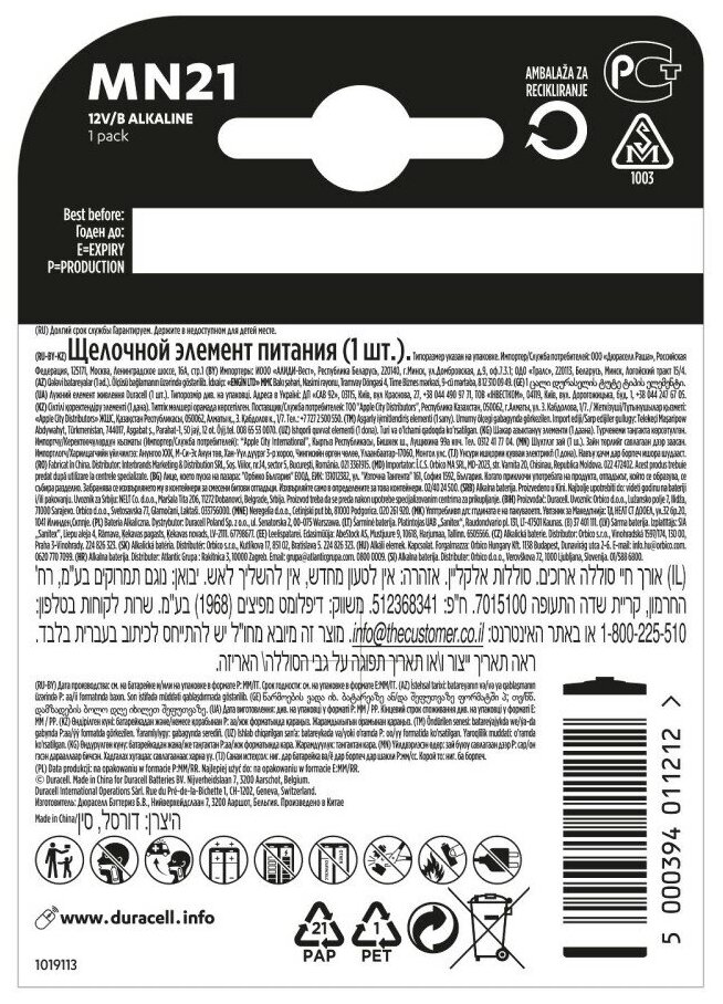 Duracell предлагает широкий ассортимент батареек, которые используются в электронных устройствах, требующих надежной энергии. Специальные батарейки Duracell MN21 предназначенны для брелков и ключей автомобиля, фотокамер, электроники, систем безопасности (сигнализаций), фонарей, игрушек и часов, а также подходят для медицинских устройств.