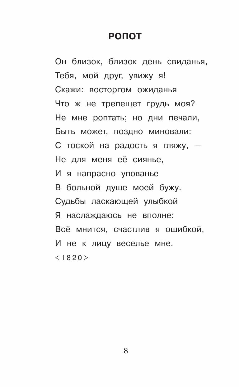 В сборник вошли лучшие стихотворения и поэмы Е.А. Баратынского, которые изучают в школе: «Весна, весна! как воздух чист!..», «Осень», «Где сладкий шепот...» и другие.
