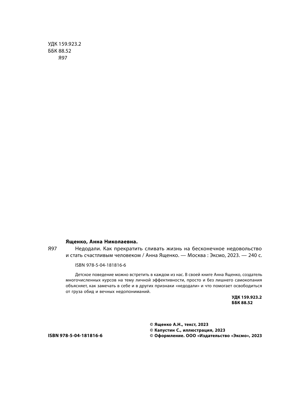 Недодали. Как прекратить сливать жизнь на бесконечное недовольство и стать счастливым человеком (Ященко Анна Николаевна); ООО "Издательство "Эксмо", 2023