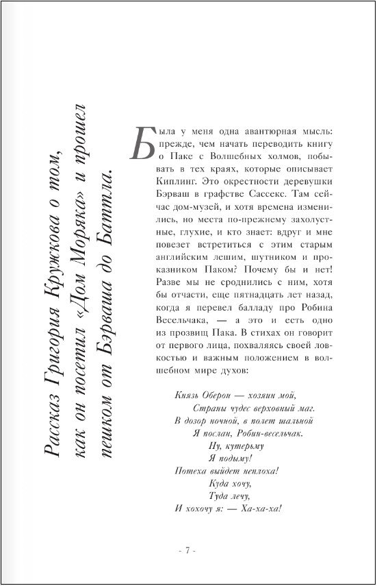 Книга нобелевского лауреата по литературе Редьярда Киплинга «Пак с волшебных холмов» уже больше века радует читателей всех возрастов, погружая их в атмосферу старой, сказочной Англии.