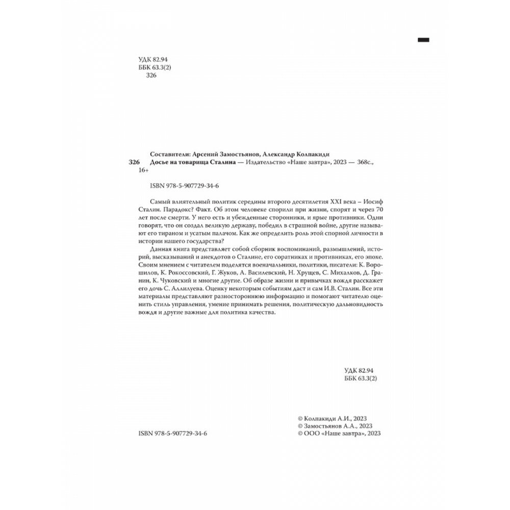 Досье на товарища Сталина (Замостьянов Арсений Александрович; Колпакиди Александр Иванович); Наше Завтра, 2023