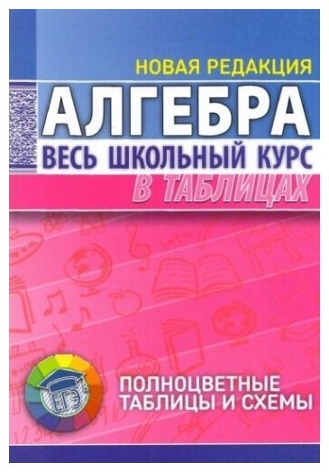 Пособие составлено в виде полноцветных таблиц и схем, систематизирующих и обобщающих теоретические сведения по школьному курсу алгебры. В таблицах кратко изложена теория по каждой теме, приведены основные формулы, графики и примеры решения типовых задач. Благодаря наглядной подаче материала усвоить тему будет легко при любом уровне подготовленности.
