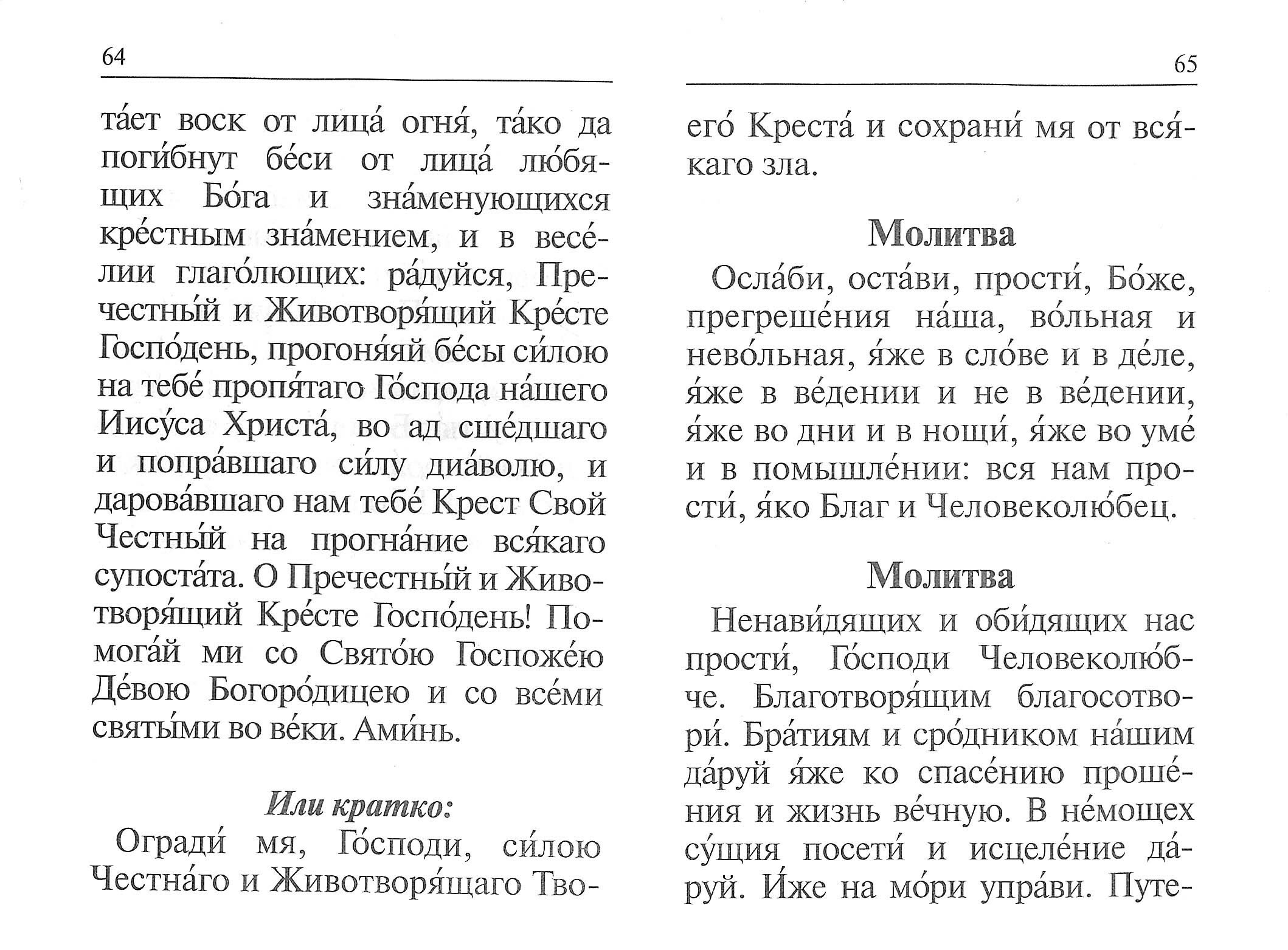 Молитвослов с русским шрифтом, с ударениями, среднего формата, в твердом переплете, шрифт крупный, бумага белая.Содержит каноны совмещенные, правило ко святому причащению, часы святой Пасхи и молитвы на всякую потребу.