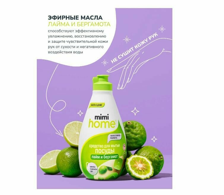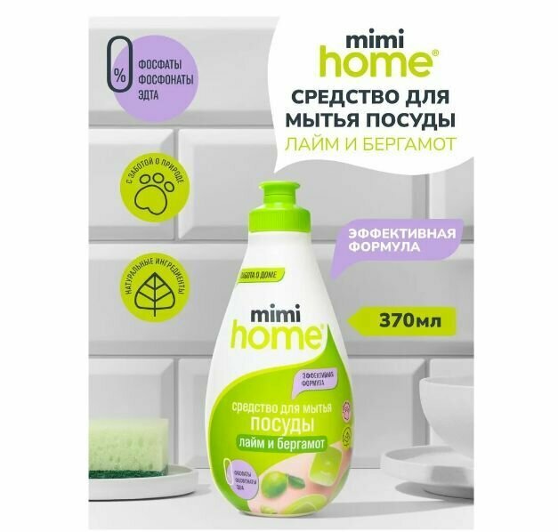 Mimihome Средство для мытья посуды Лайм и бергамот 370 мл Mimi Home
