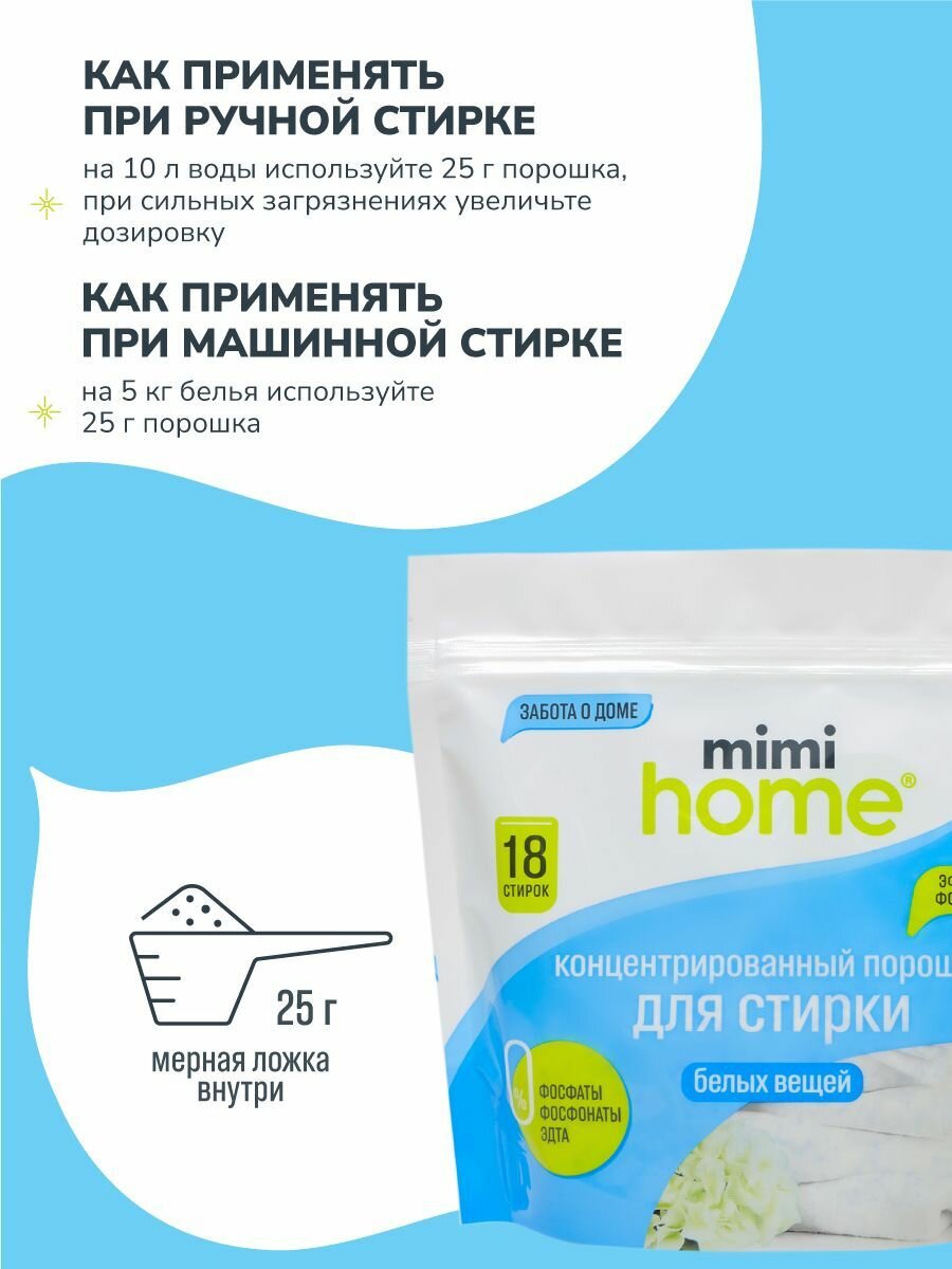 Порошок концентированный Mimi Home для стирки белых вещей 450 г