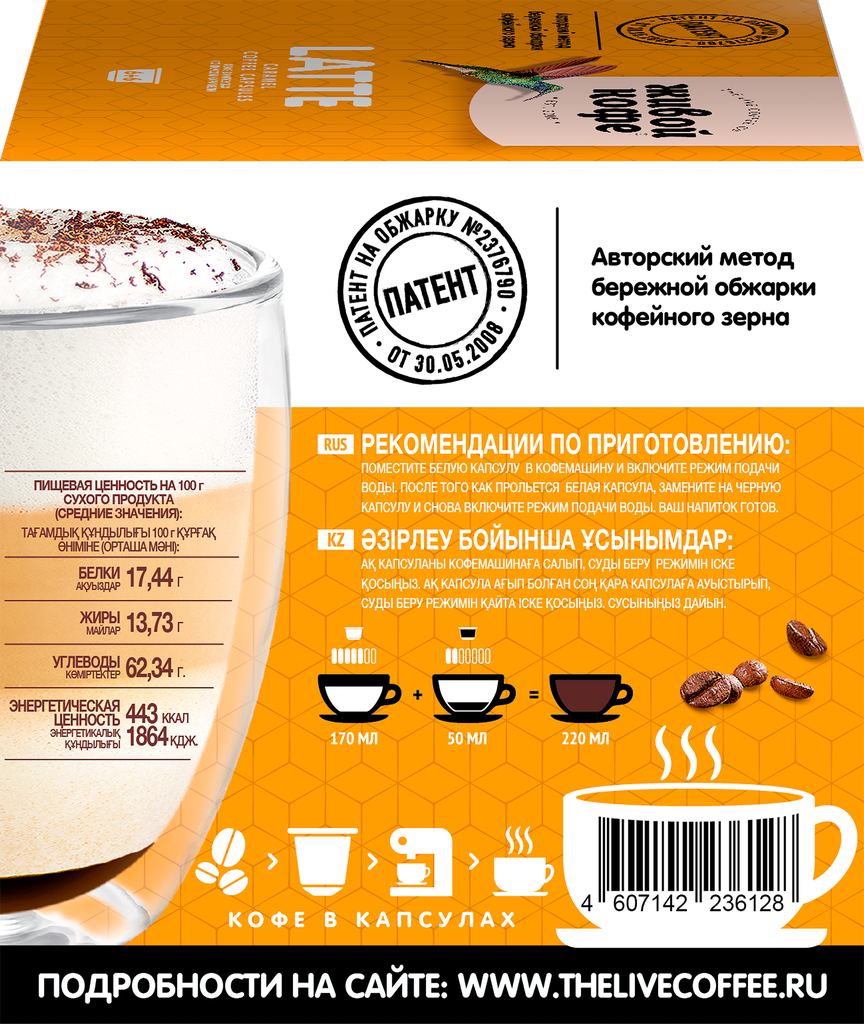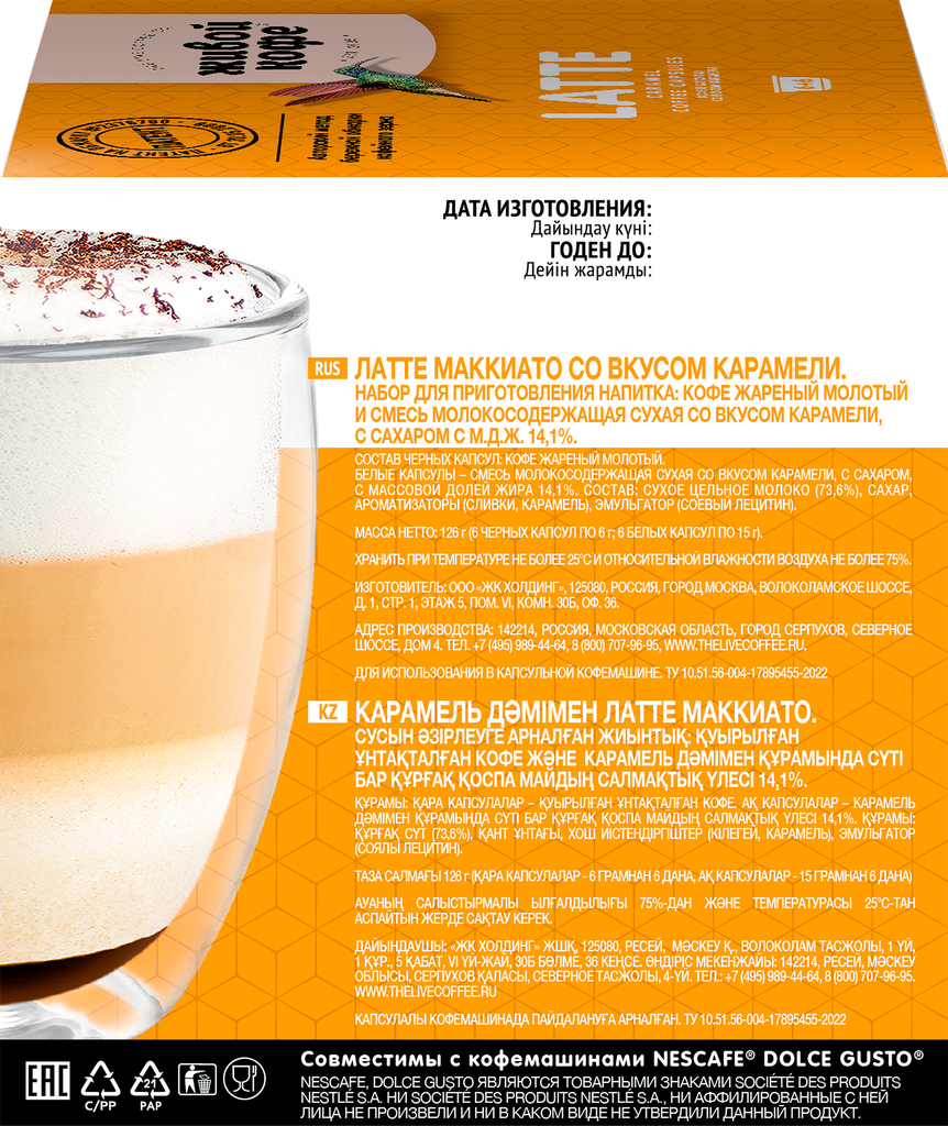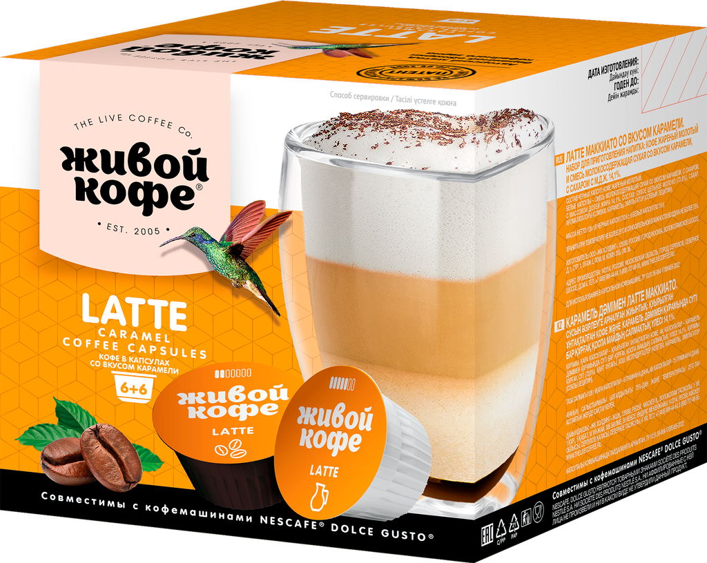 Кофе в капсулах Живой кофе Latte карамель 12 кап. в уп.