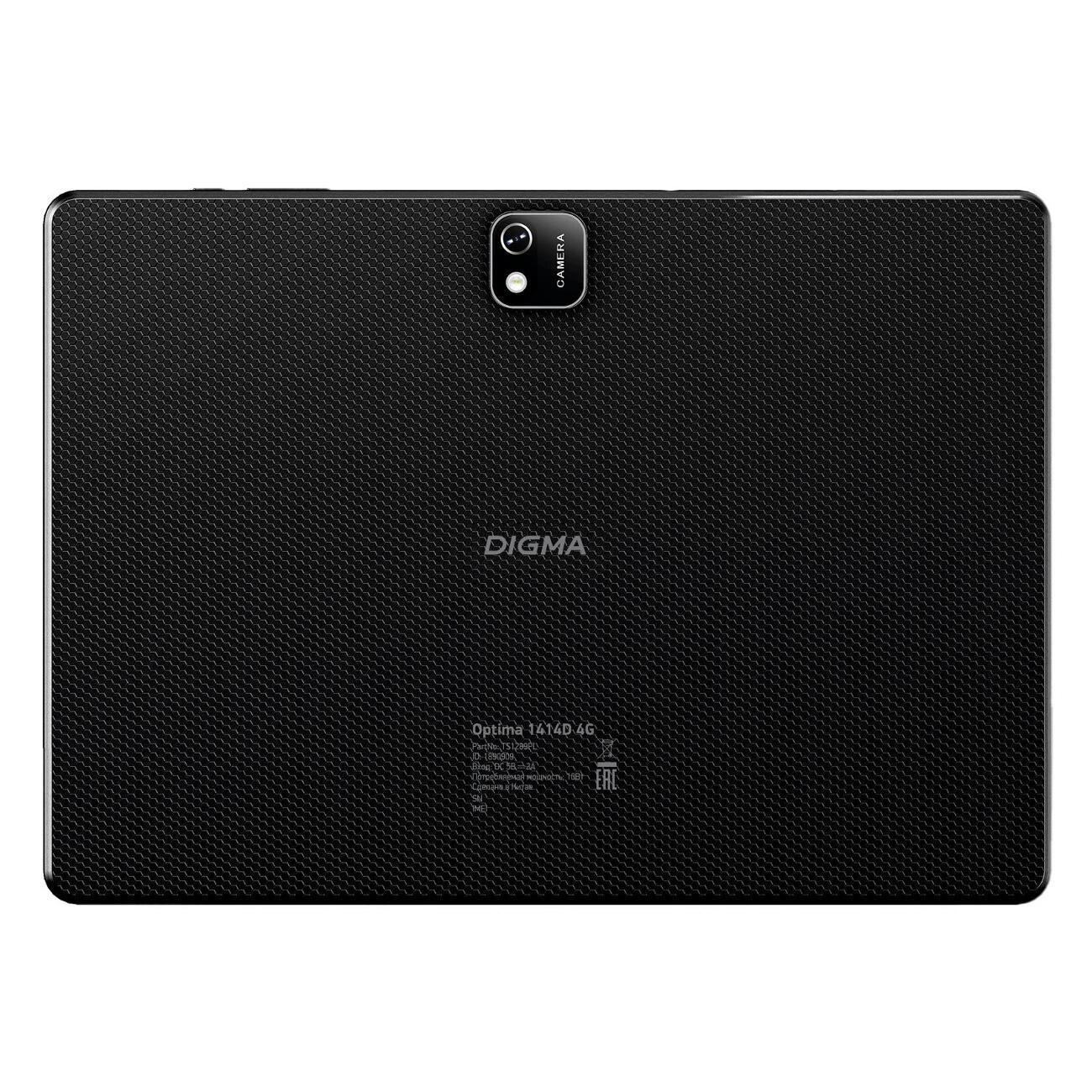 Планшет Digma Optima 1414D 4G черный, процессор Unisoc T606, оперативная память 4Gb, встроенная память 64Gb, диагональ экрана 10.1", IPS, 1920x1200, поддержка 3G/4G, WiFi, v5.0, камера 5Mpix/2Mpix, GPS, Android 12, поддержка microSD до 256Gb, 6000mAh (TS1289PL)