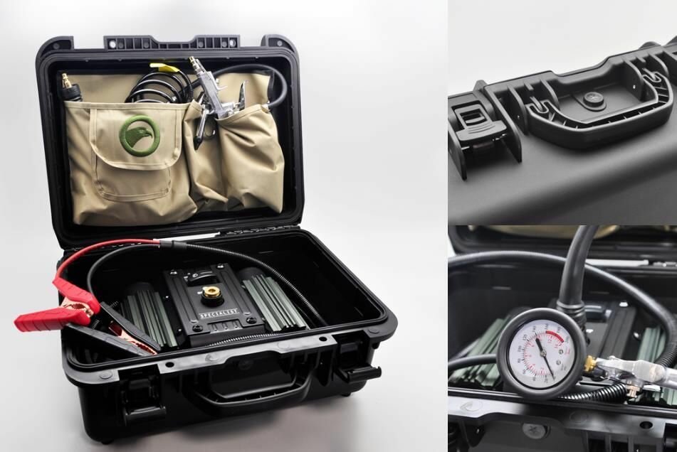 | Прочие особенности | Компрессоры поршневого типа, не требующие смазки, Износостойкое поршневое кольцо из фторопласта PTFE, Воздушные клапаны из прочной нержавеющей стали, Обратный клапан воздушной магистрали, Рабочие цилиндры из алюминиевого сплава, Электродвигатели с постоянными магнитами, Автоматическая система защиты от перегрева, Пыленепроницаемое исполнение + фильтры очистки, Реле давления для автоматического ВКЛ/ВЫКЛ, Морозостойкие провода питания, Ударопрочный герметичный кейс для хранения и переноски |