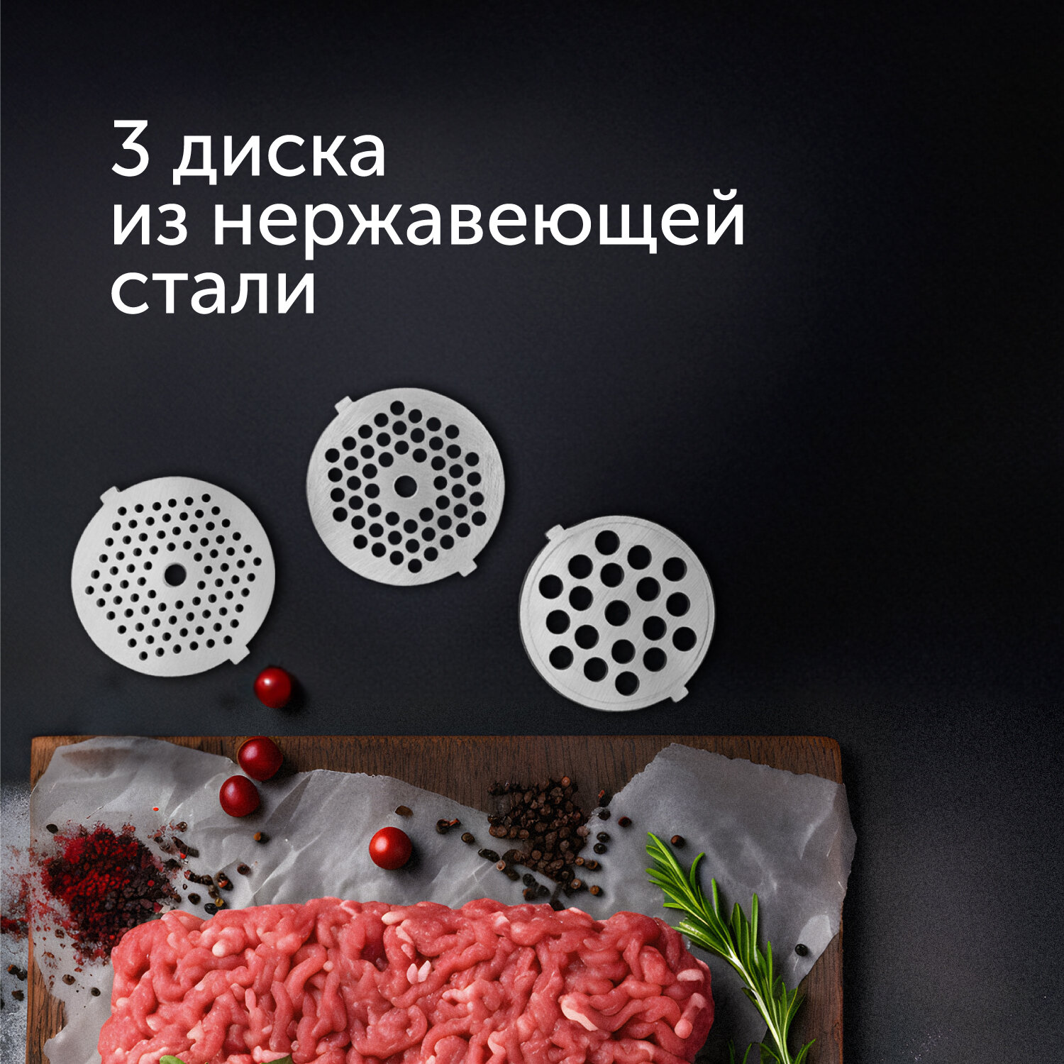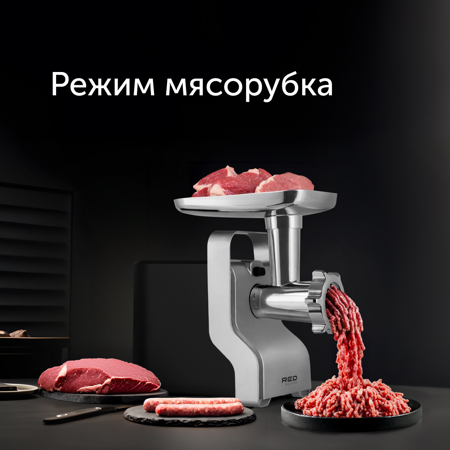 Мясорубка Red Solution серебристый, мощность 2000Вт, производительность до 2.5кг/мин, дисков для фарша 3, материал лотка металл