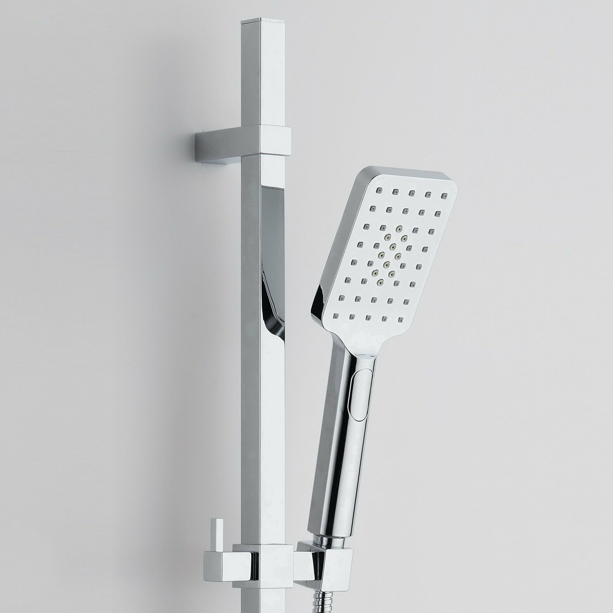 Душевой гарнитур 70см BOND Cube B03-8788 чёрного цвета с трёхрежимным ручным душем имеет стильный дизайн и отлично смотрится в современном интерьере душевой или ванной комнаты. В комплект входят:- штанга 70см с креплениями к стене;- трёхрежимный ручной душ с форсунками из термоэластопласта;- регулируемый по высоте и наклону держатель ручного душа; - шланг 150см в металлической оплётке.Благодаря форсункам из термоэластопласта на ручном душе, можно удалить с них известковый налёт, просто потерев ладонью. Термоэластопласт - лучший материал на сегодняшний день, применяемый в различных отраслях, имеющий высокую прочность и устойчивость к износу и высоким температурам.